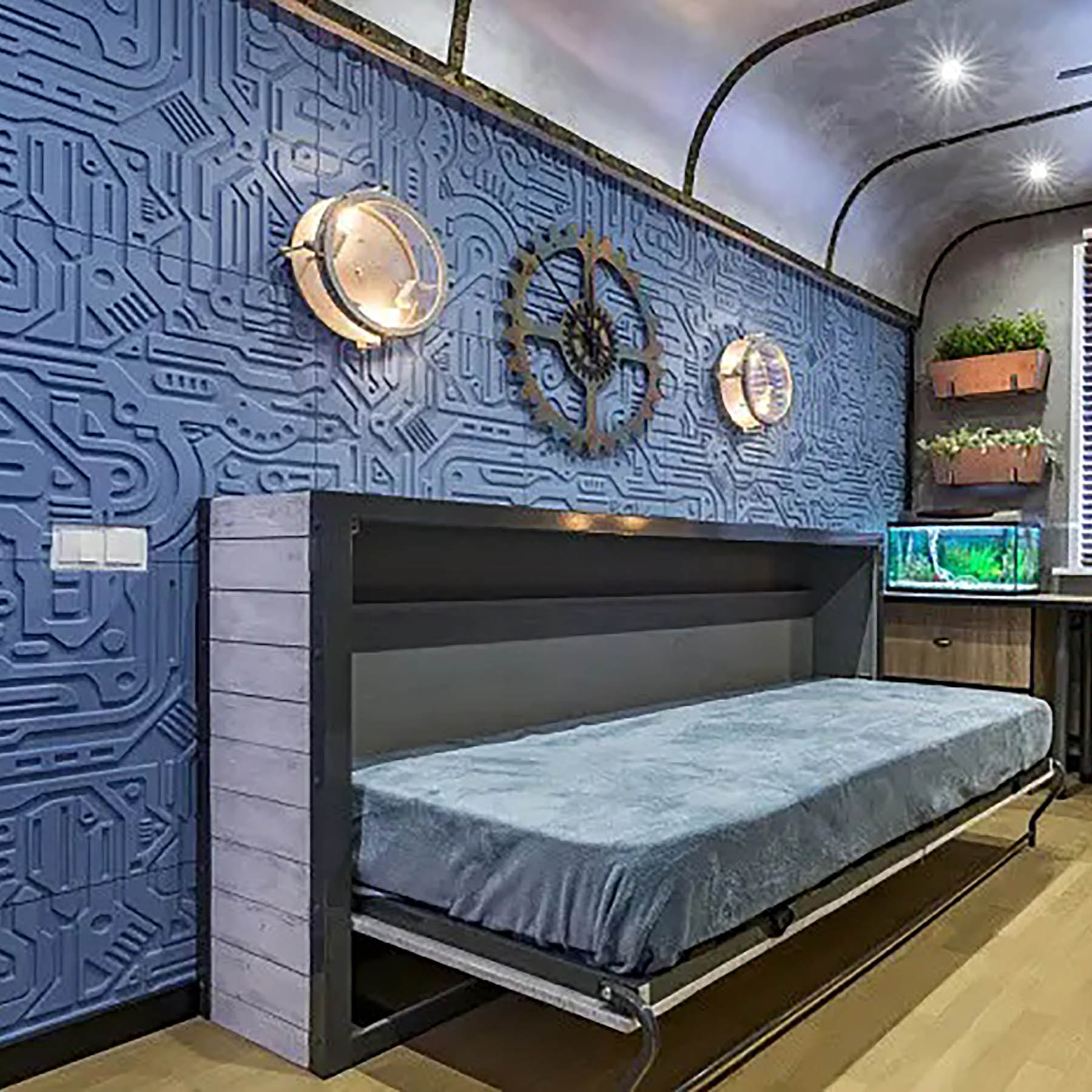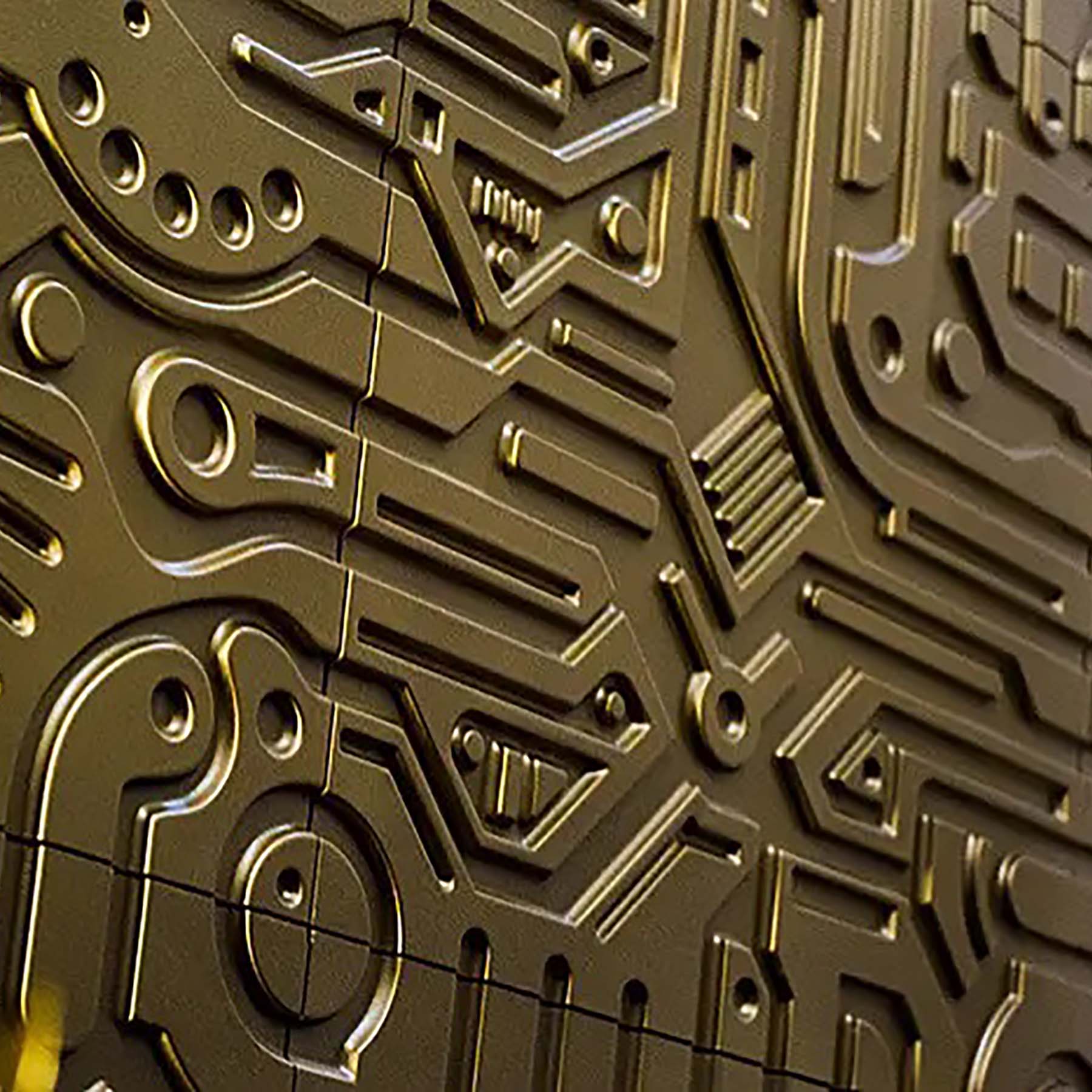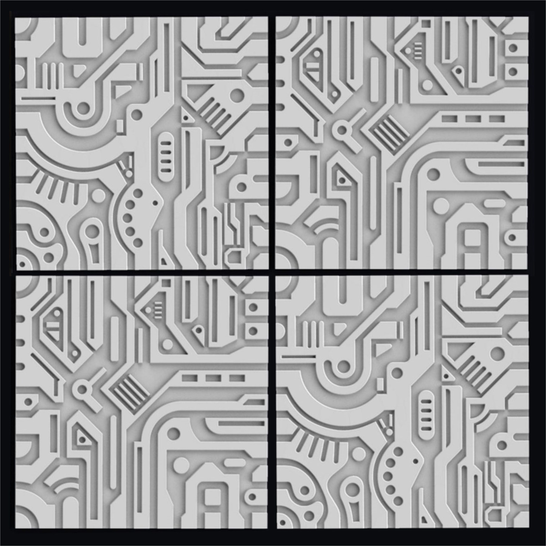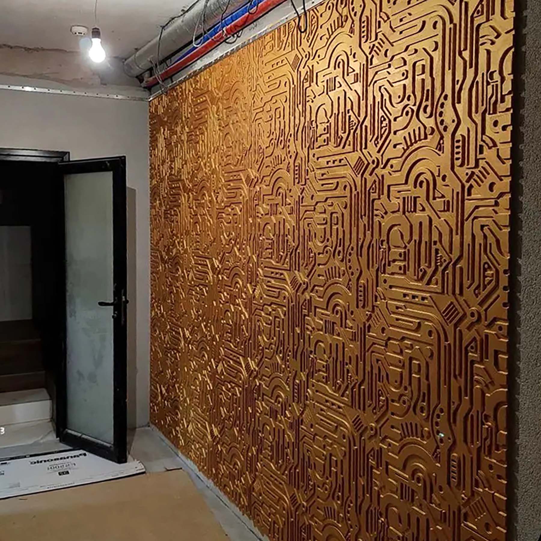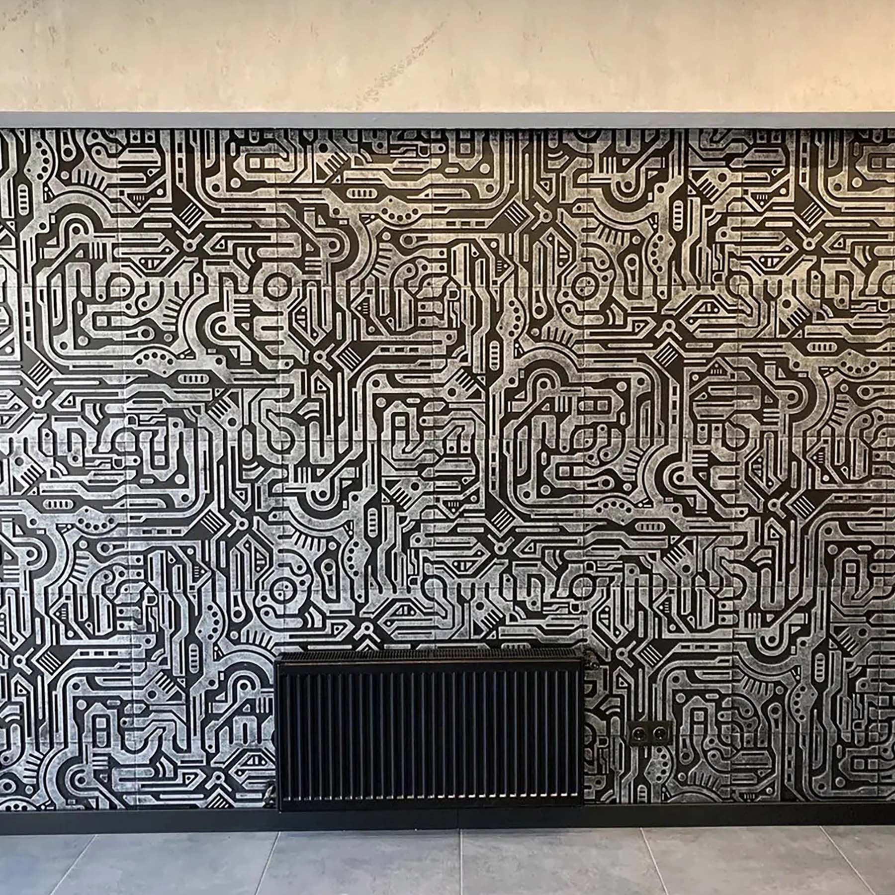Спроєктовані панелі відомим дизайнером Carlos Alberto здобули популярність у різноманітних сучасних інтер’єрах. Популярні елементи ретро-футуризму як уявляли люди у давнину майбутні технології знайшли своє застосування. Універсальна форма панелей та об'ємний технократичний малюнок дозволить реалізувати цікавий дизайн кухні-студії, вітальні, стильного офісу, тематичного кафе.