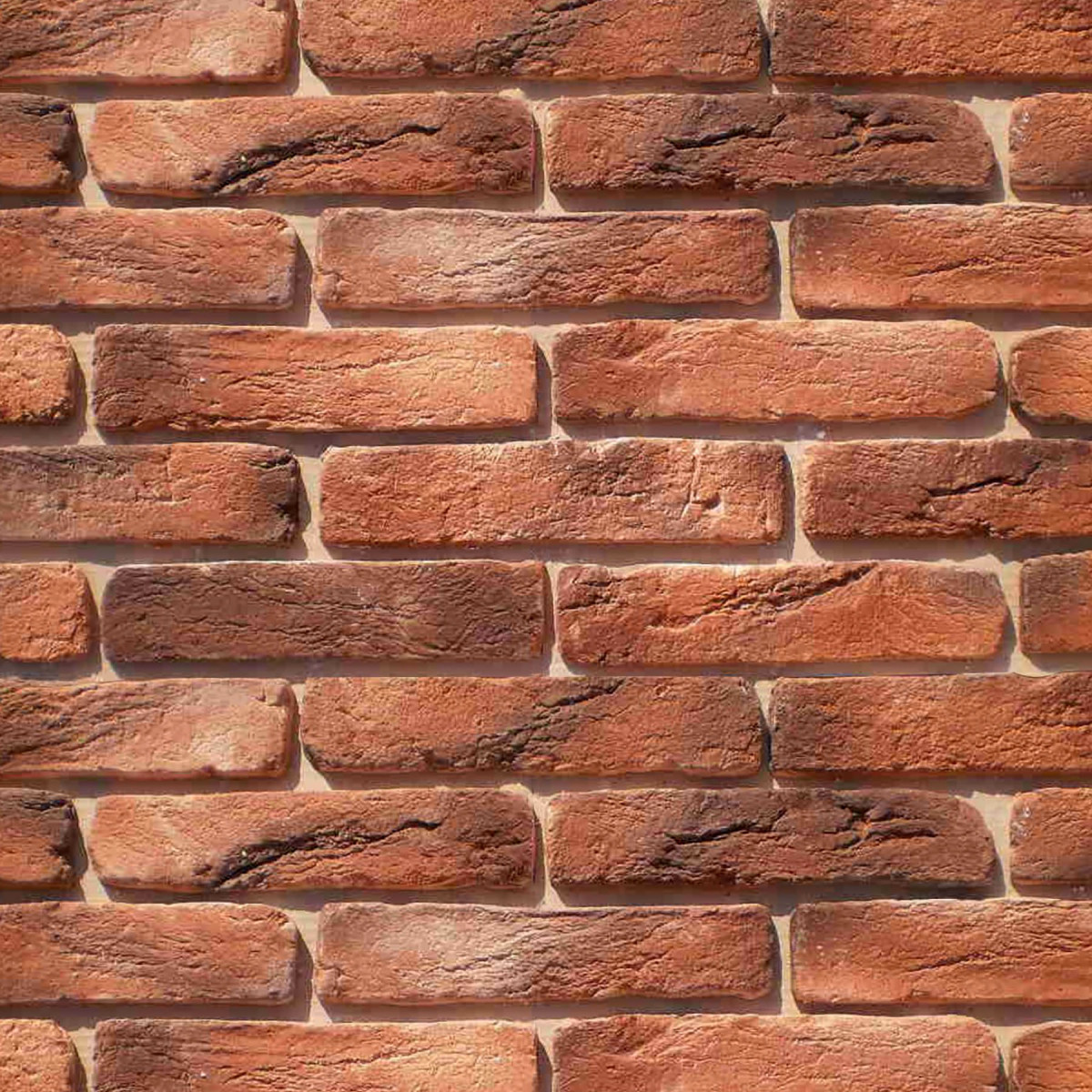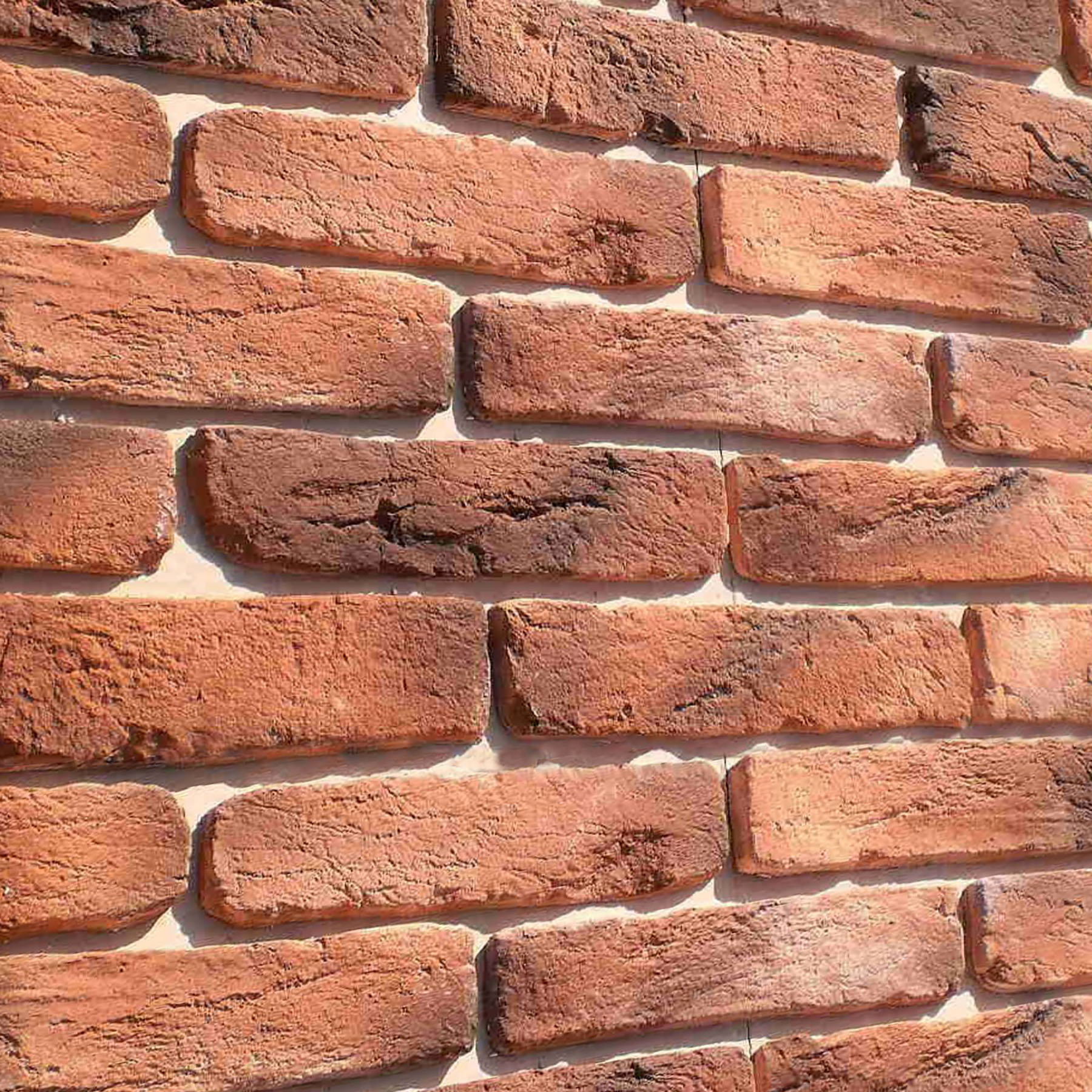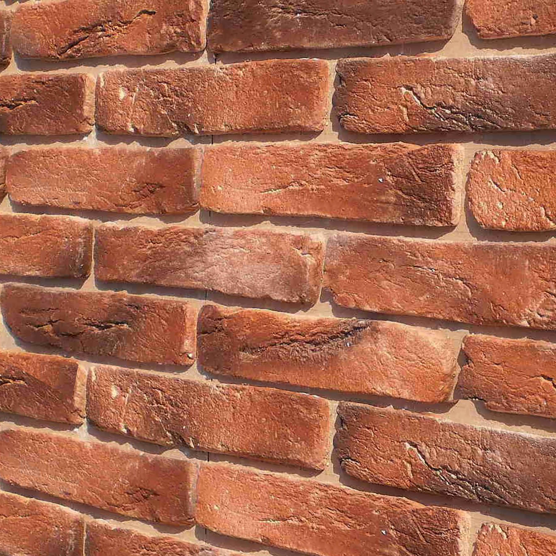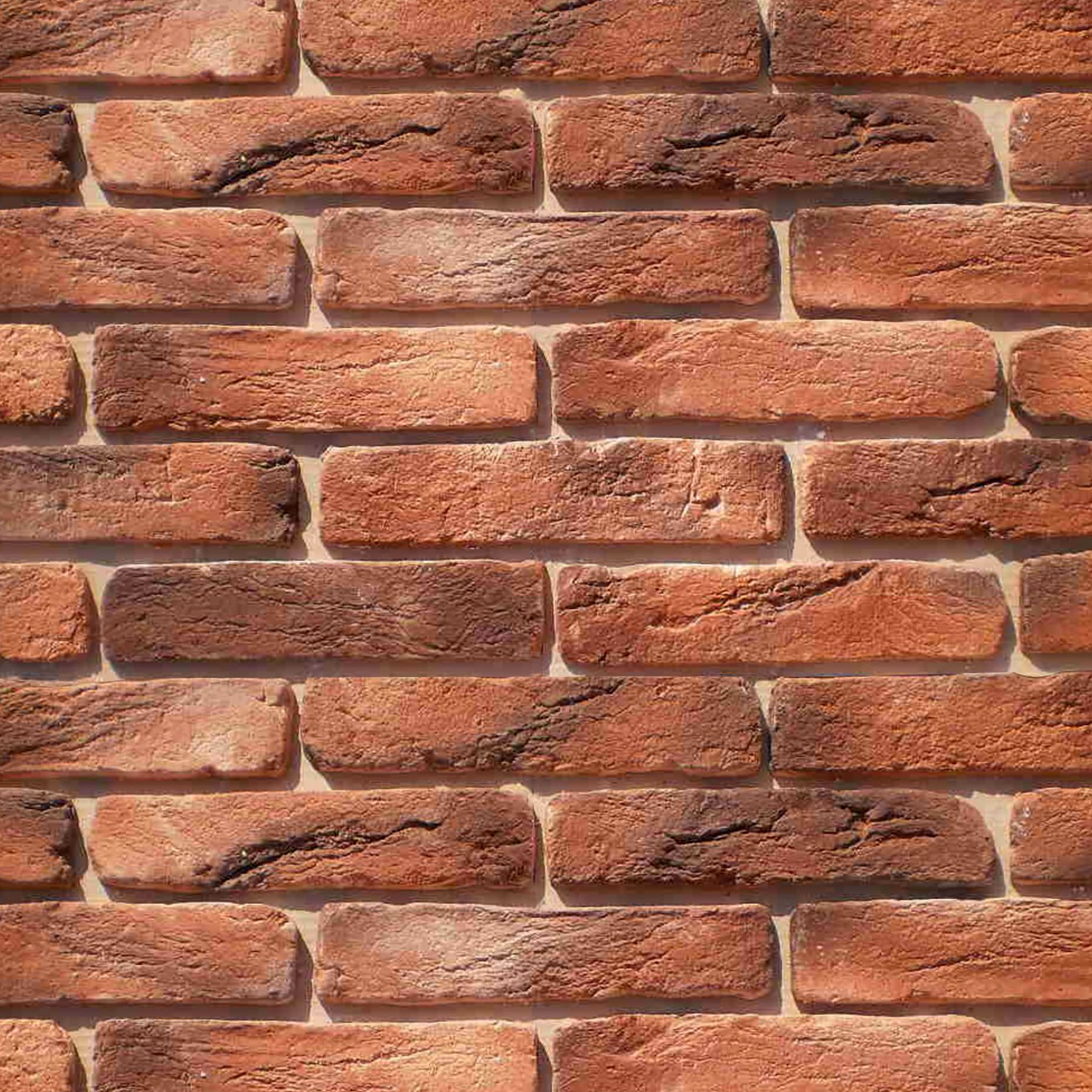 Натуральна декоративна цегла червоно-теракотових кольорів має вкраплення, що імітують іржаві ділянки й створюють реалістичний вигляд зістареної цегли. Легкий наплив вінтажного вигляду цегляної кладки надзвичайно популярний в сучасному оформленні фасадів та різнопланових приміщень.