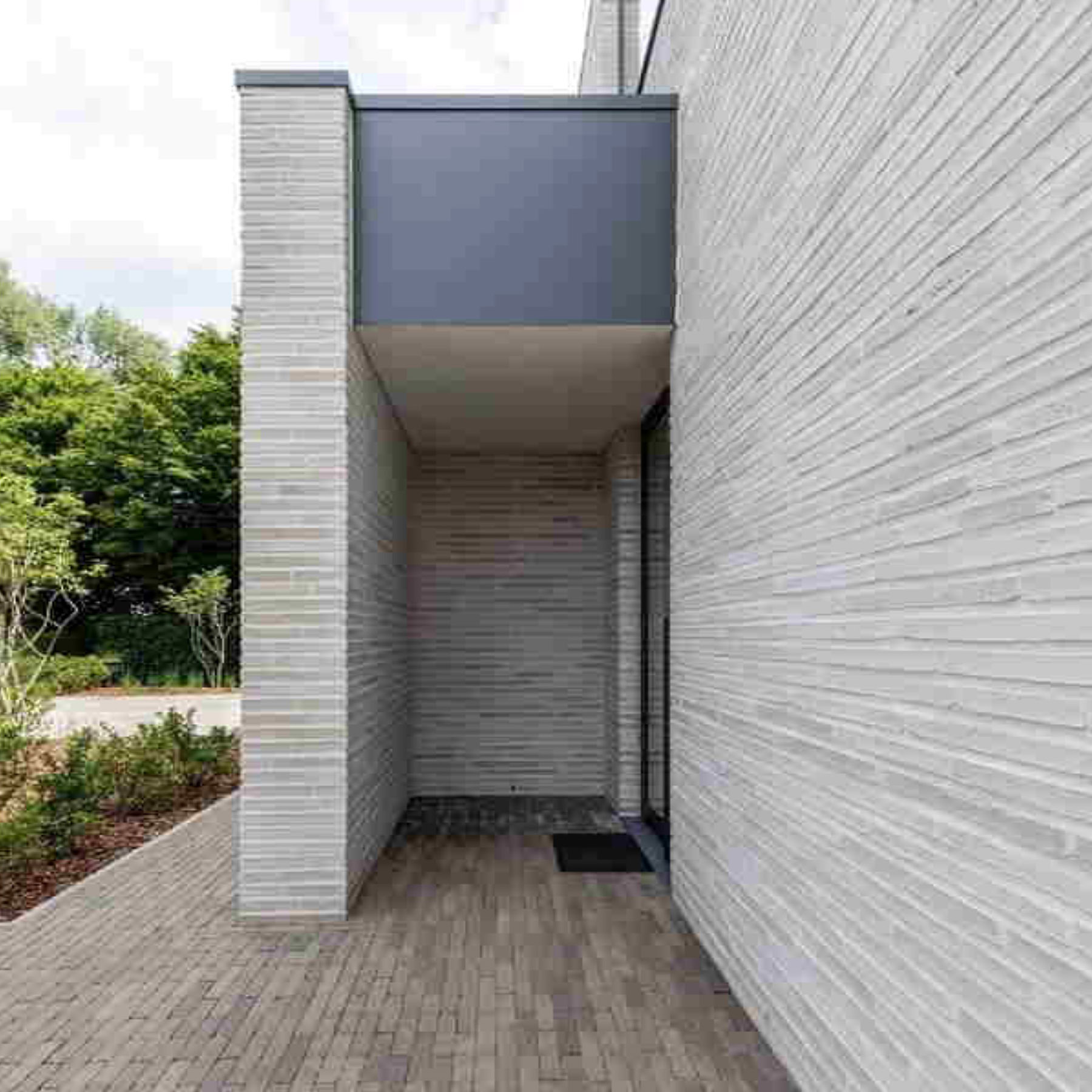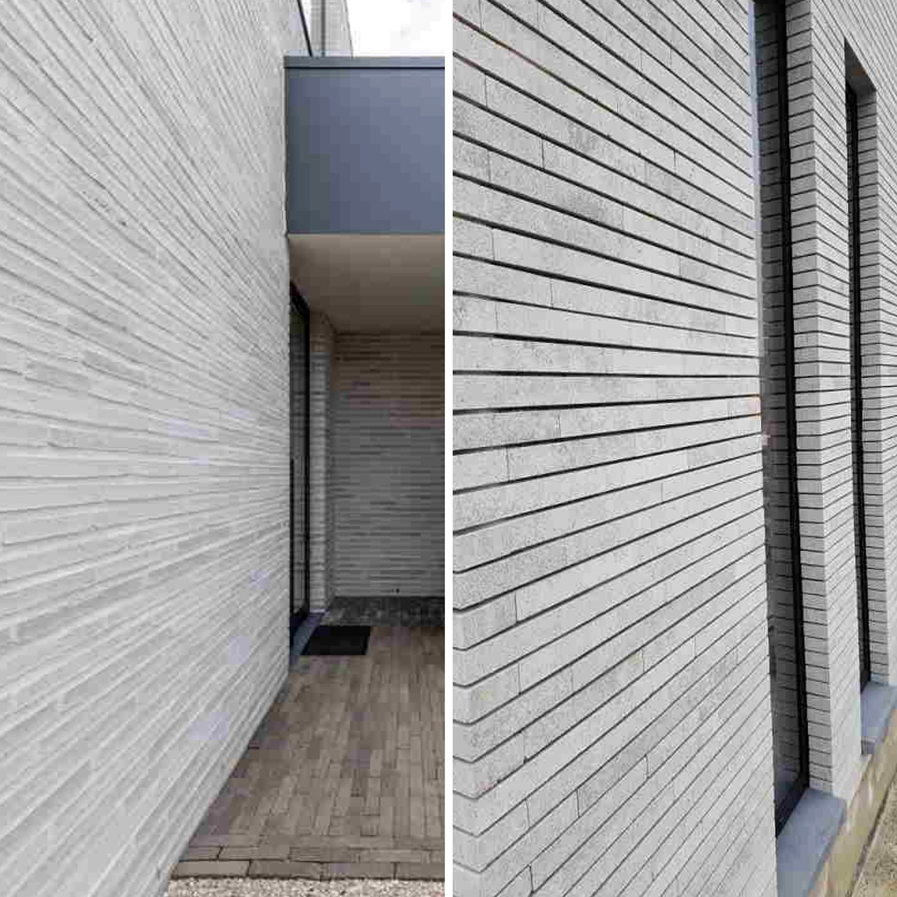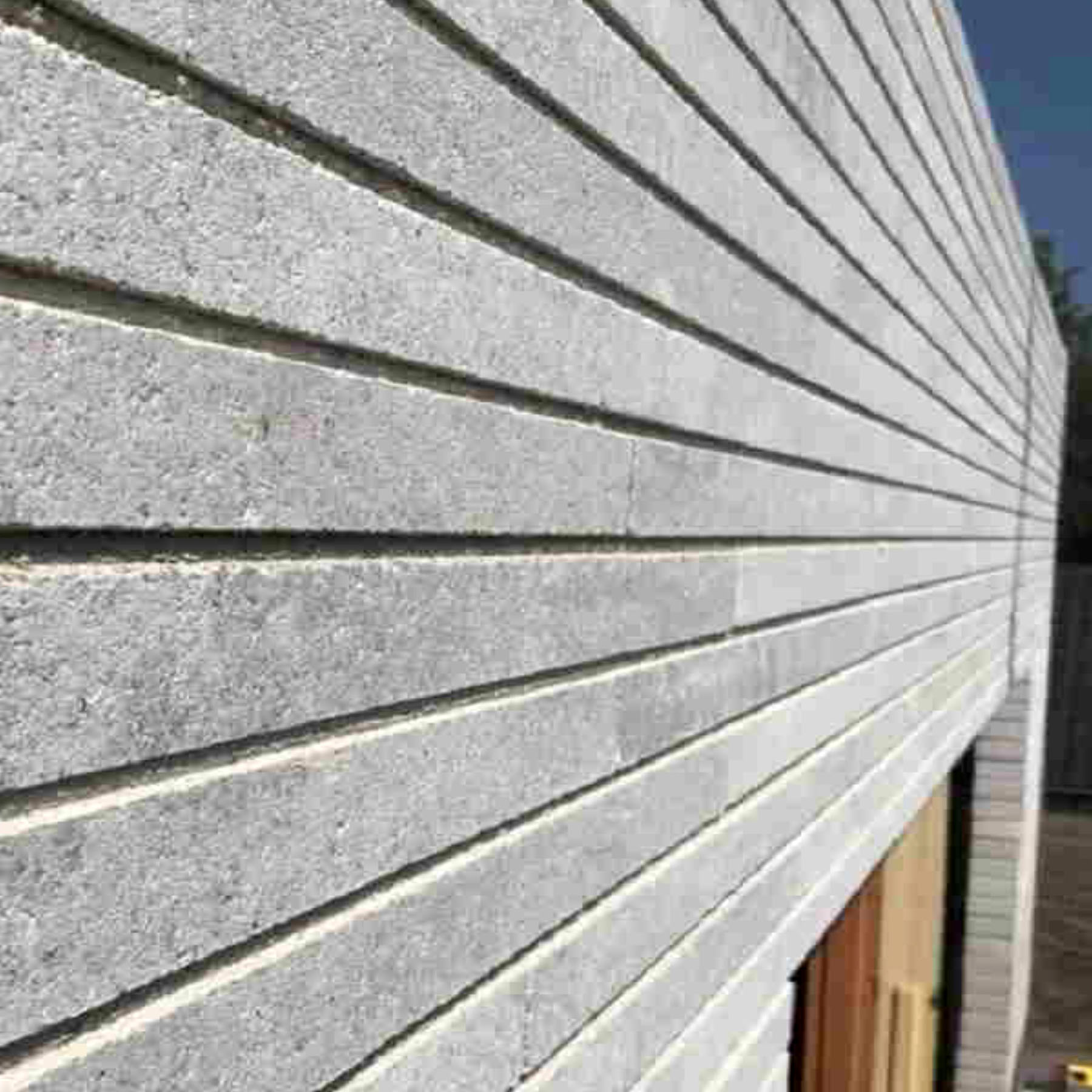 Фасадна плитка виготовлена з білого бетону високої якості. Видовжена форма, натуральний колір продукції надзвичайно популярний в оздобленні фасадів і внутрішніх стін приміщень.