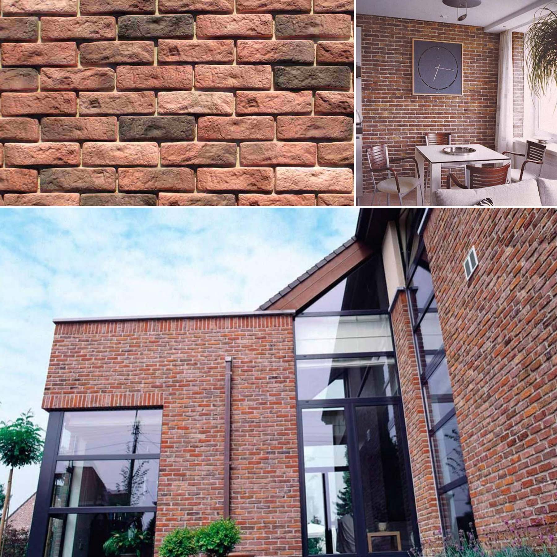 Завдяки ручному виготовленню тональне наповнення кожної цеглини унікальне і в процесі монтажу складається в оригінальне цегляне панно. Жива фактура каменю Rustic подібна на панцир черепахи зі старовинним рельєфом та червоно-коричневим забарвленням популярний настінний декор з універсальними можливостями