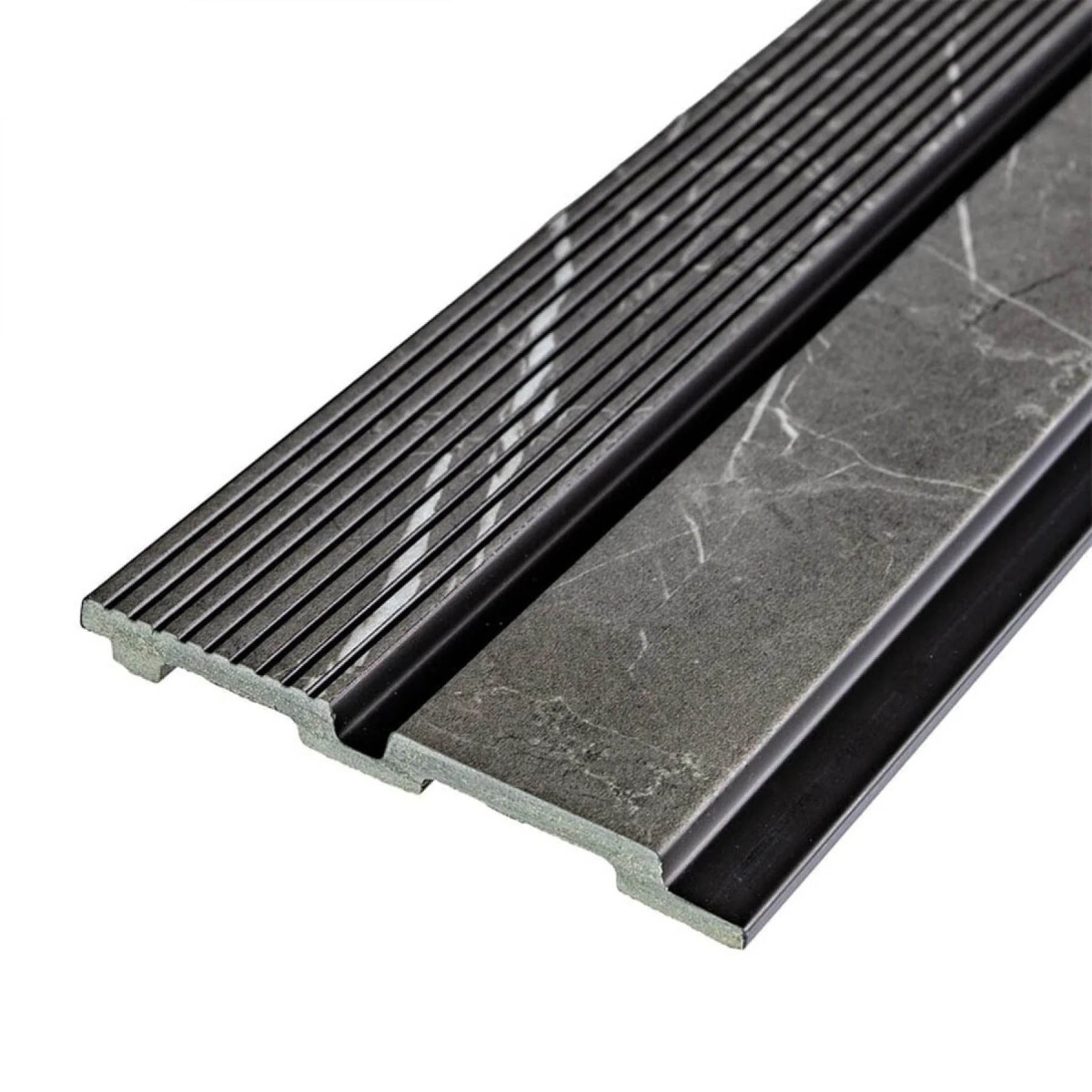 Декоративна стінова рейка PS відтінку Сірий мармур – практичний декор для оздоблення житлових та комерційних приміщень. Унікальна текстура натурального мармуру на поверхні має виражений реалістичний малюнок. Декоративні панелі з глибоким темно сірим мармуровим малюнком, завдяки об’ємній 3D формі створюють відмінний просторовий ефект на стінах приміщення та можуть виступити центральним декором дизайну інтер’єру.
