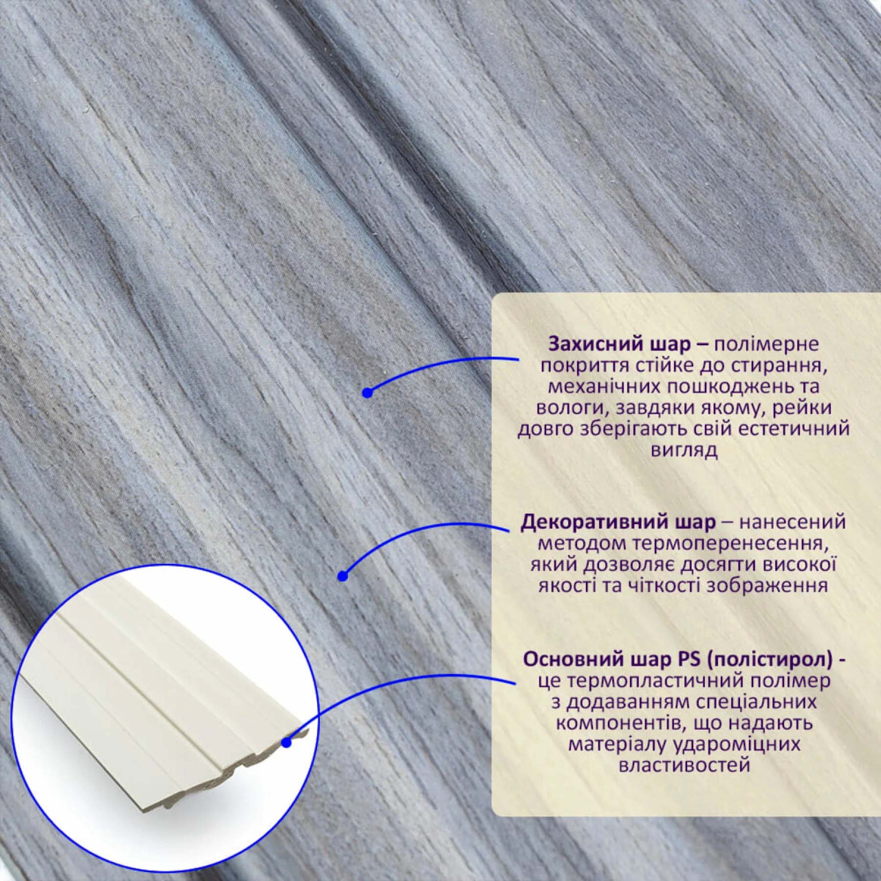 Рейкова панель містить багатошаровий склад: