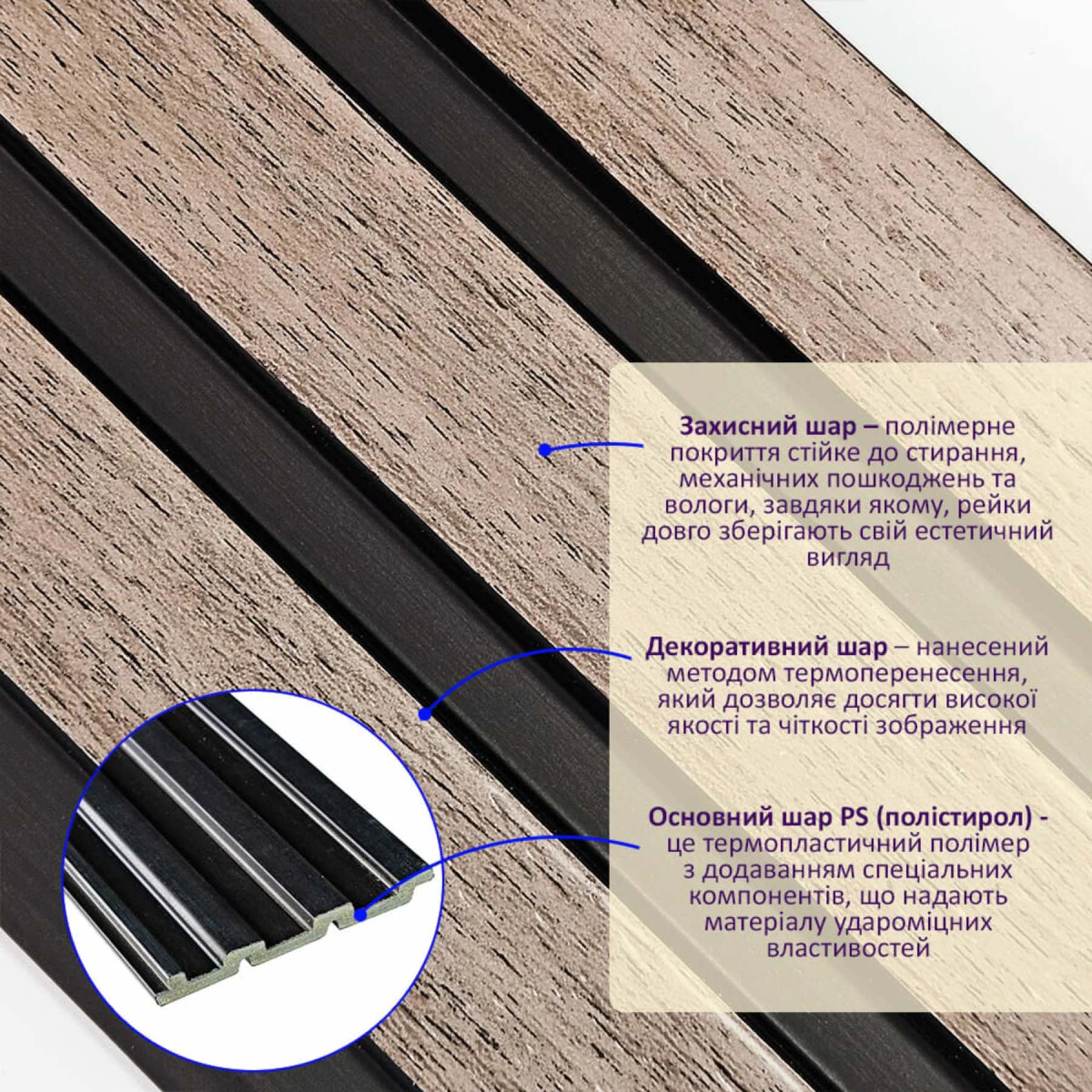 Рейкова панель містить багатошаровий склад: