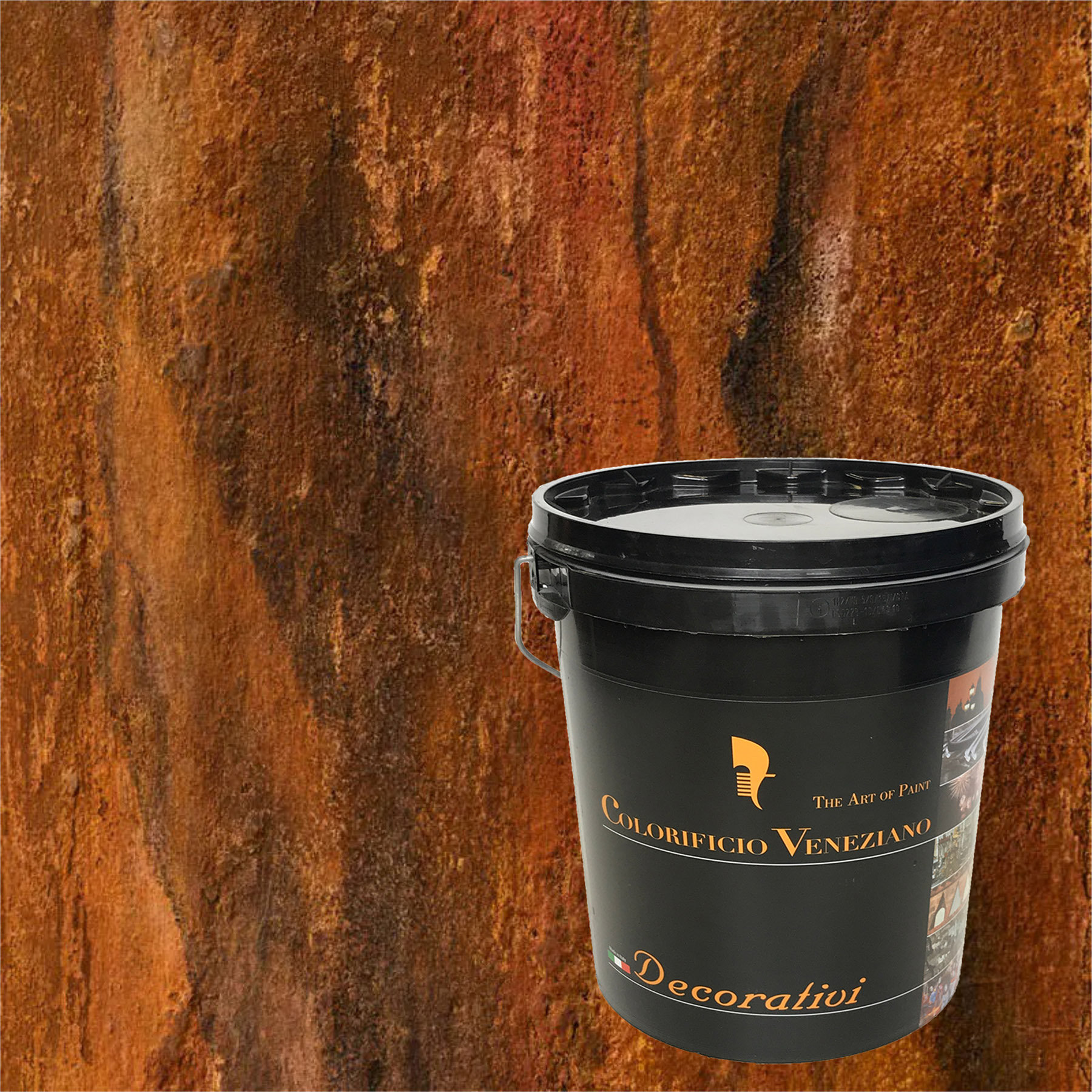 Італійська декоративна штукатурка з ефектом іржі в топі продажів в усьому світі! Базовий матеріал чорного кольору створює ефект корозії, старовинного заліза та іржавого металу. Матеріал наноситься на різні типи поверхонь. Для досягнення потрібного результату передбачене обов’язкове нанесення оригінального активатора на базовий матеріал.