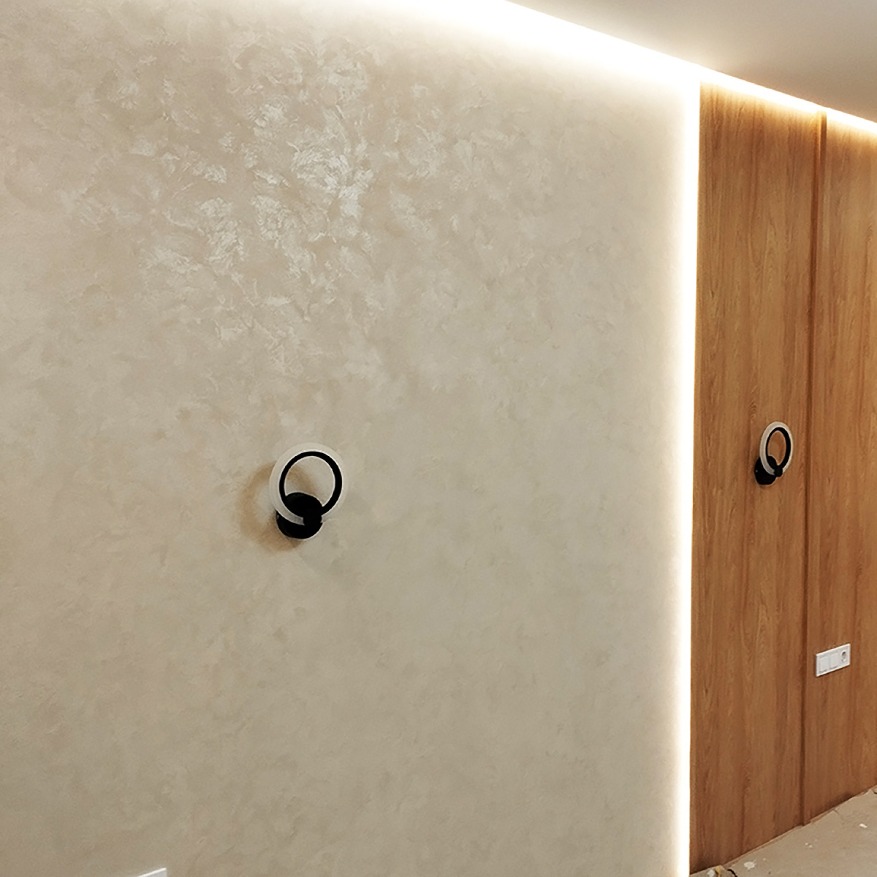 Декоративна штукатурка Оточенто, ефект бархату, вельвет, мокрий шовк, ілюзія має багато назв на ринку оздоблювальних матеріалів. Різні виробники, проте один результат. Декоративна штукатурка при нанесенні на поверхню створює враження покритої шовковою тканиною стін. Перламутрові переливи проявляються під різним кутом огляду фактури. Легка текстура наноситься різними способами та має перламутрову поверхню. Хаотичними рухами та короткими мазками створюється ефект морозу або вертикальним напрямом утворює вигляд прозорого дощу. Декоративна штукатурка мокрий шовк має легкий рельєф. В основному тонується дуже світлими відтінками. Гладка поверхня декору потребує максимально рівної площини, тому підготовка стін повинна бути як під фарбування.