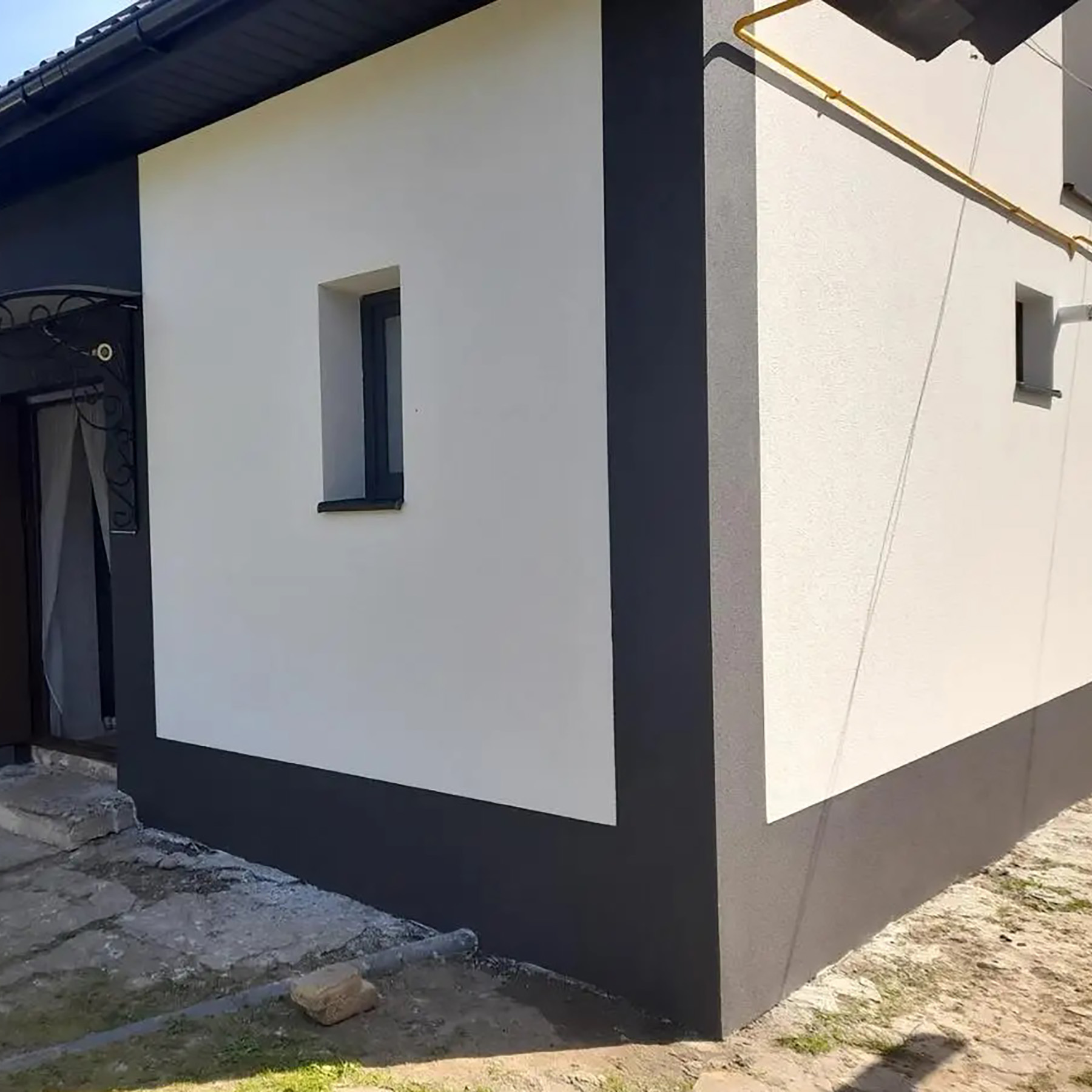 ВИКОНАННЯ РОБІТ: Ретельно розмішати фасадну декоративну штукатурку протягом 5-12 хвилин для створення однорідної маси. Нанести штукатурну суміш на основу шпателем одним шаром, що відповідає товщині зерна. Зстосувати пластикову терку для створення характерної текстури покриття, наносячи суміш круговими плавними рухами. Не застосовувати сильний тиск на поверхню під час оздоблення.