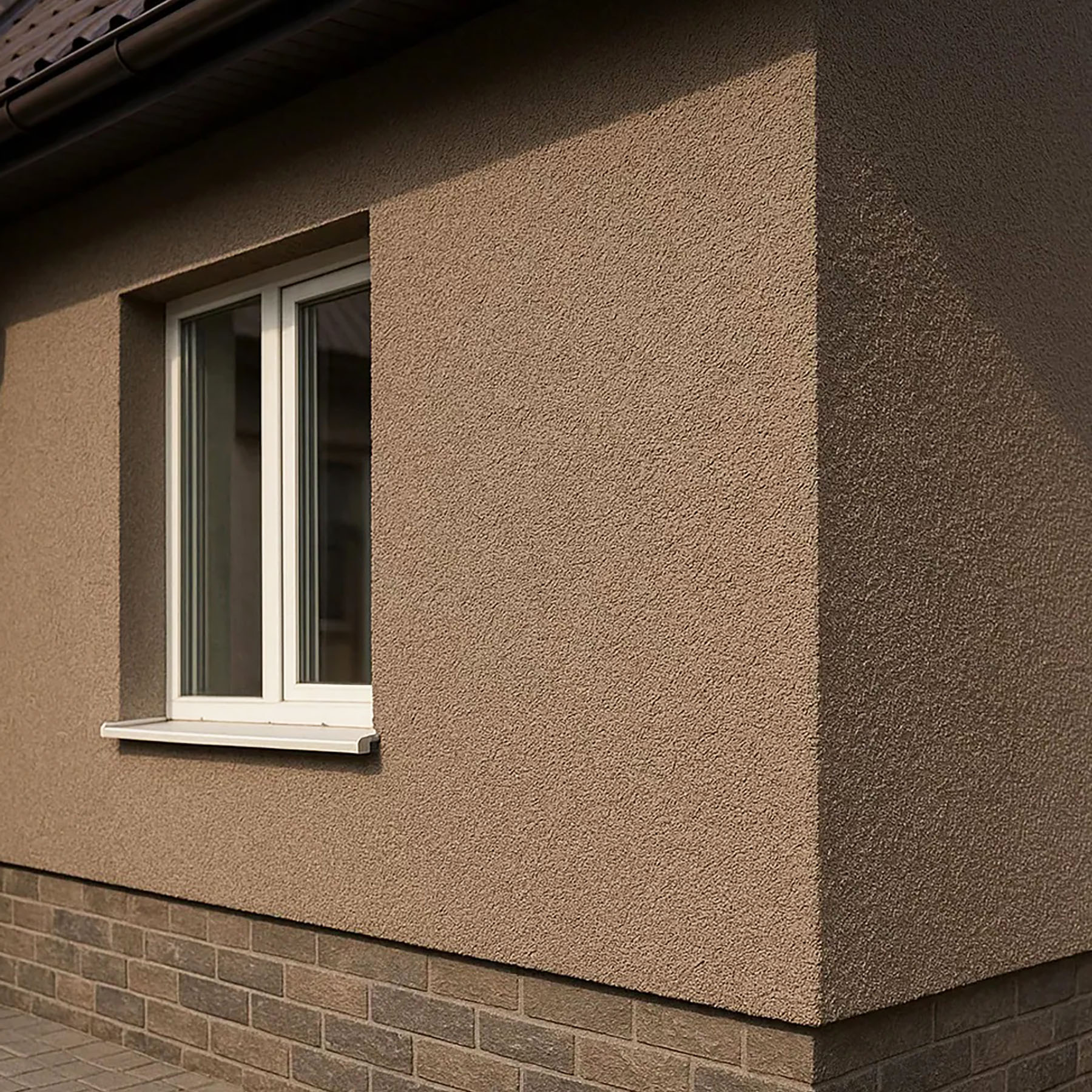 НАНЕСЕННЯ: Спочатку ретельно розмішати вміст відер з для утворення однорідної маси матеріалу. Процес розмішування декоративної суміші займе 5-12 хвилин. Одним суцільним шаром нанести фасадну штукатурку на поверхню на товщину зерна. Протягом 10 хвилин після нанесення декоративної суміші плавними рухами пластикової терки моделюється характерна структура у вигляді дрібних камінців на стінах. Плавними круговими рухами розподілити суміш по площині без надмірного тиску на терку. Завдяки техніці нанесення утвориться необхідний фактурний ефект камінців.