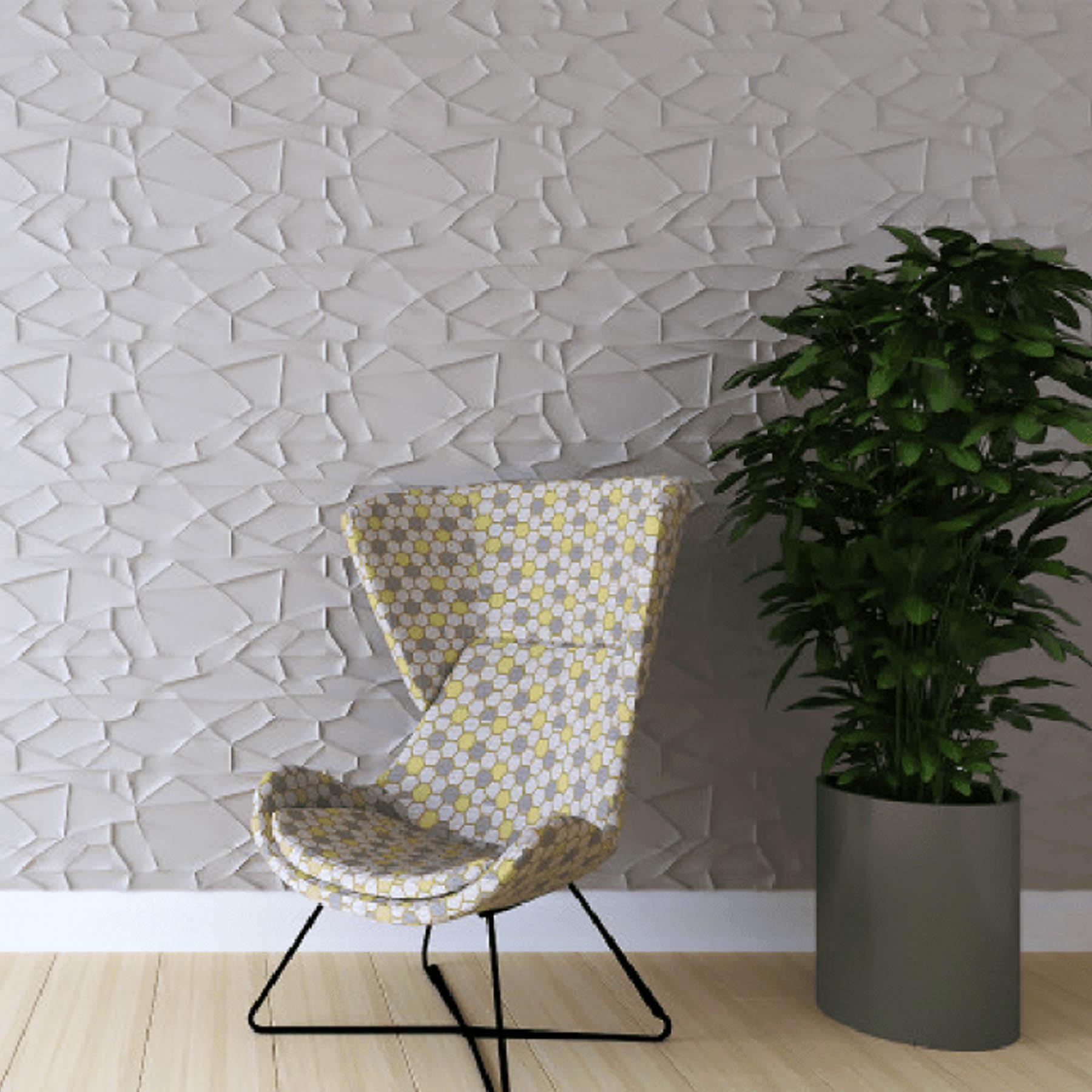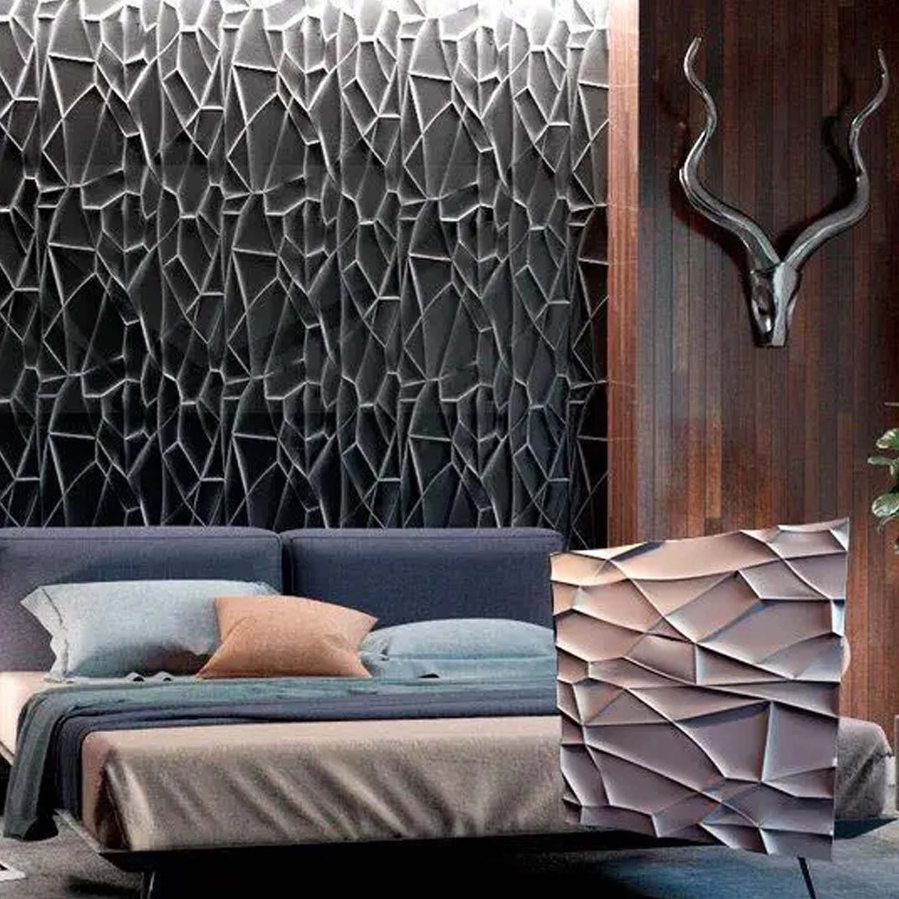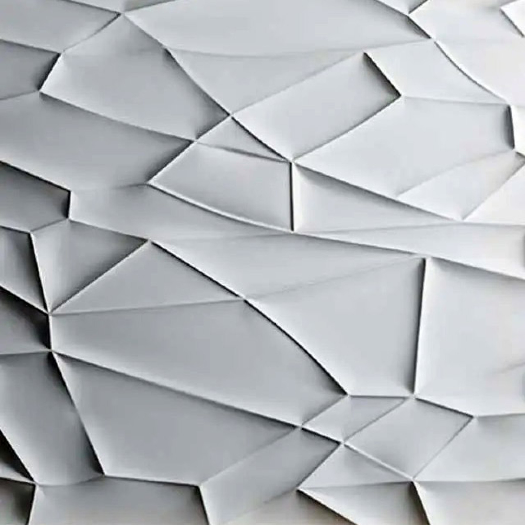 Візуальна мова рельєфу Рок. Уявіть поперечний зріз гірської породи — той момент, коли скеля розкривається і показує свої внутрішні шари. Саме це відчуття відтворює гіпсова панель Рок: полігональні площини різного нахилу, різкі переходи між гранями, виразні впадини та гострі виступи. Гіпсовий декор Rock має продуману геометрію, що копіює природну структуру каменю. Додайте кольору для створення глибини об’ємного сприйняття на стінах.