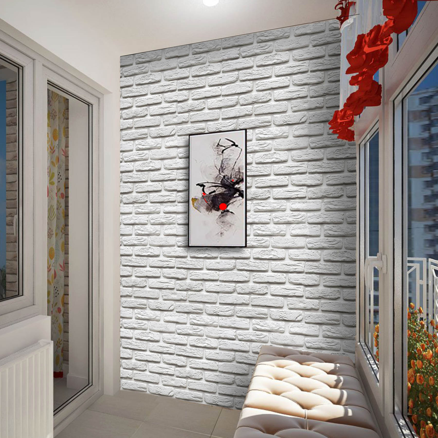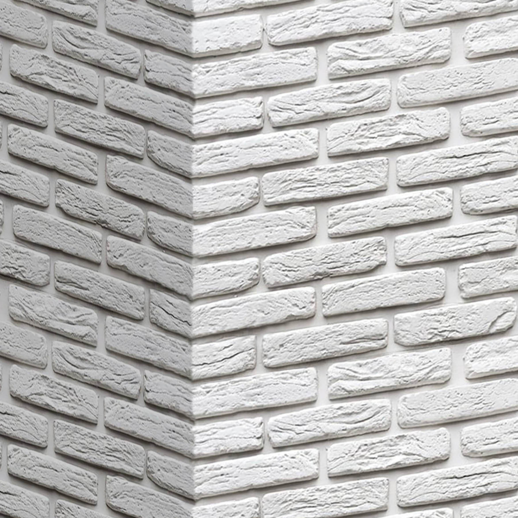 Оригінальна кам’яна фактура цегли з гіпсу стане недорогим та оригінальним оздобленням в сучасному та класичному інтер’єрі. Біла цегла може фарбуватись у будь-який колір відповідно до задуму дизайну вашого інтер’єру. Цегляні стіни застосовуються у різних стилях: Лофт, Кантрі, Модерн, Мінімалізм.