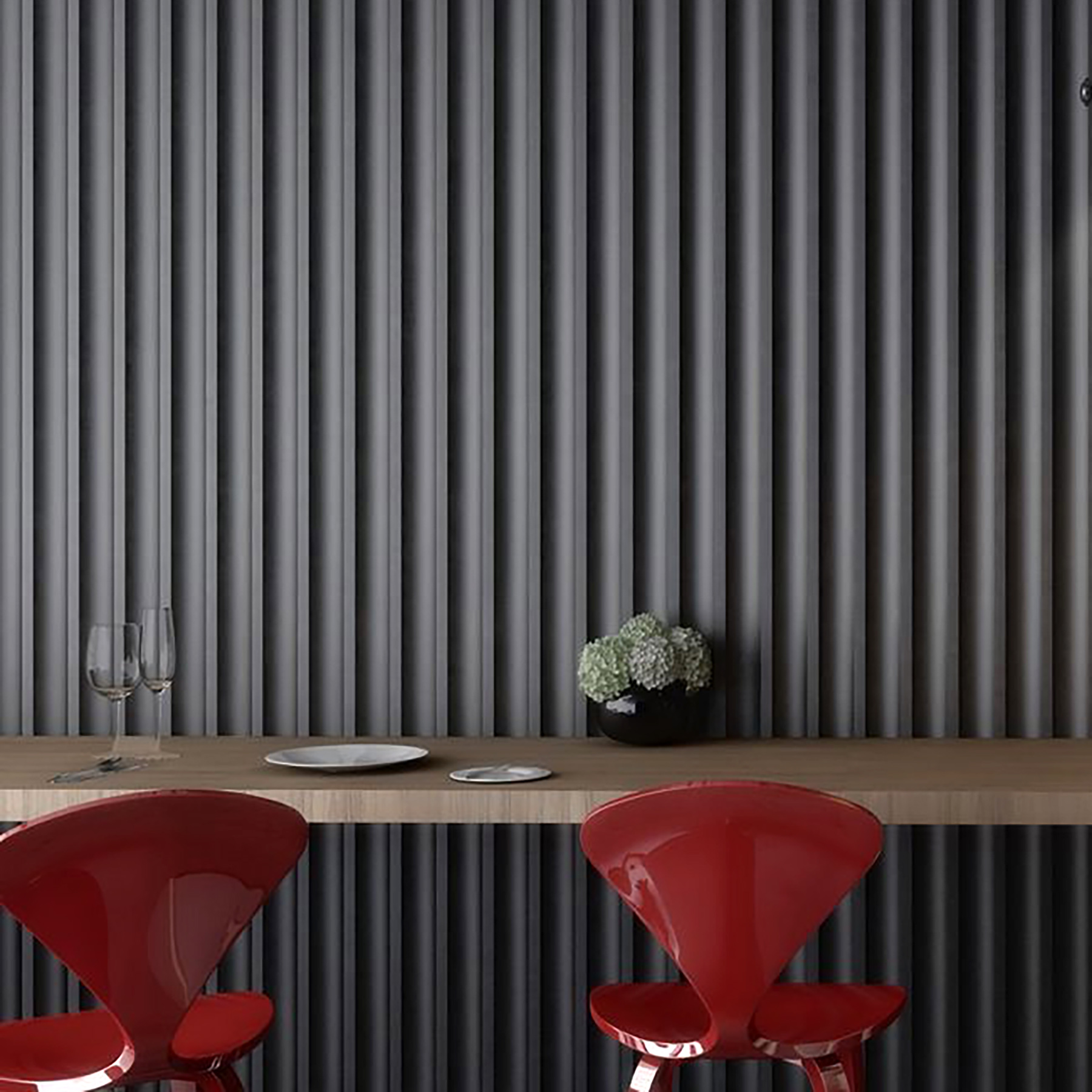 Декоративні панелі що у вигляді прямих паралельних рейок з заокругленими краями та чіткими кутами – універсальний класичний настінний декор. Протягом сторіч гіпсове оздоблення інтер'єру зарекомендувало себе, як якісний міцний матеріал. Повітропроникні якості матеріалу, міцна структура буде окрасою на тривалий термін.