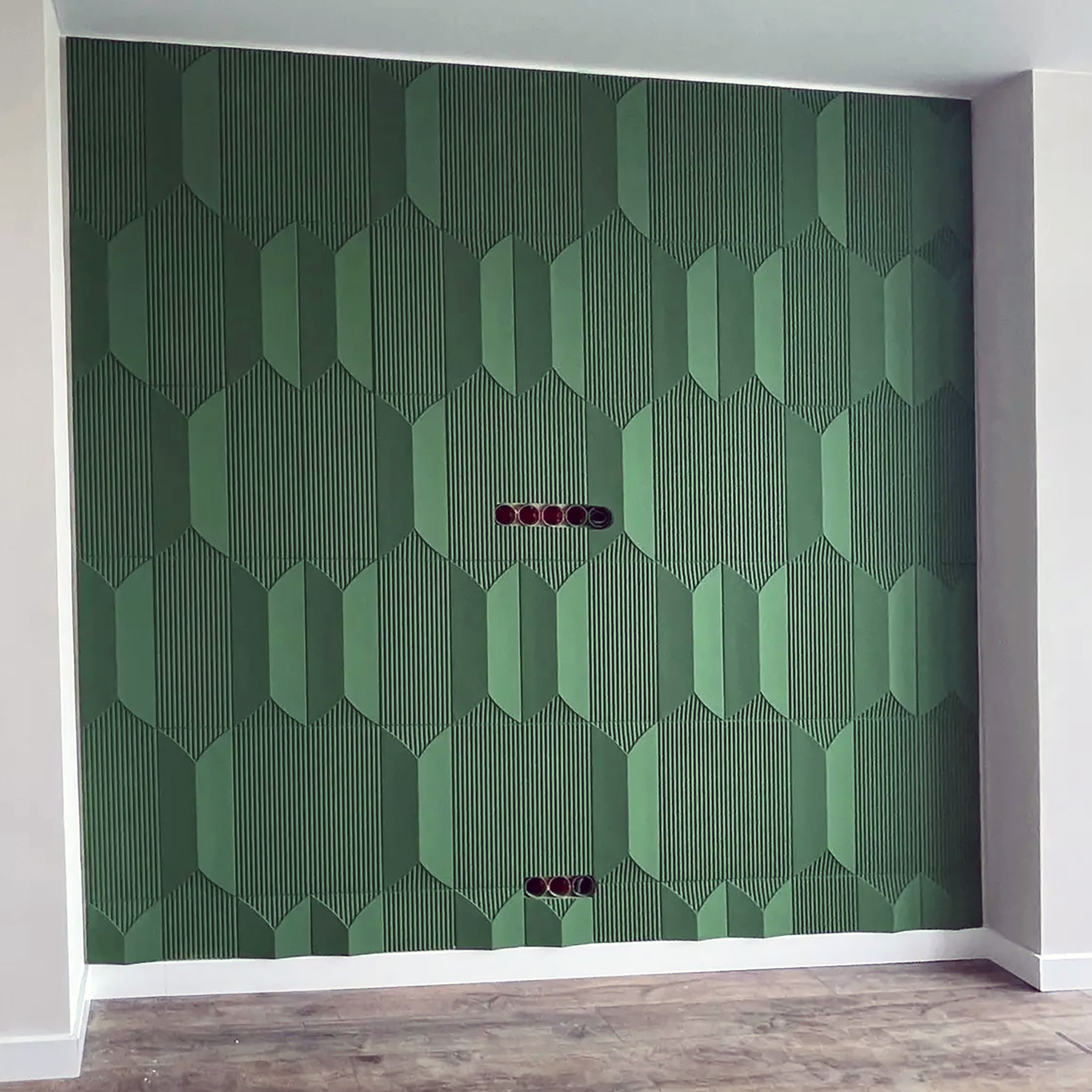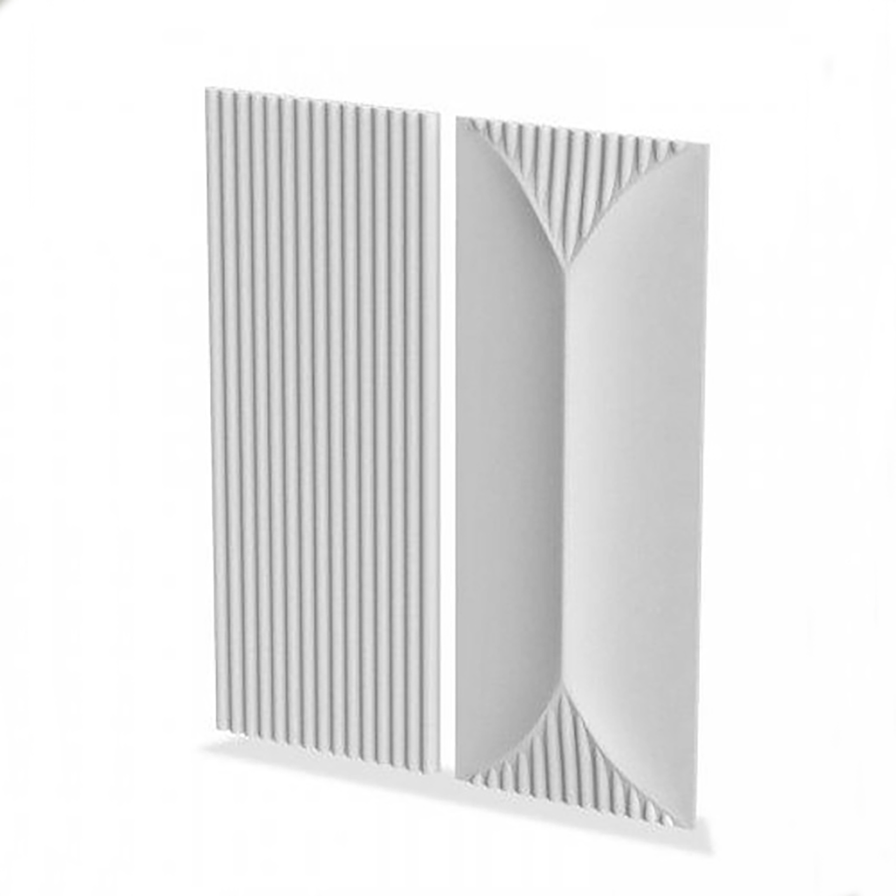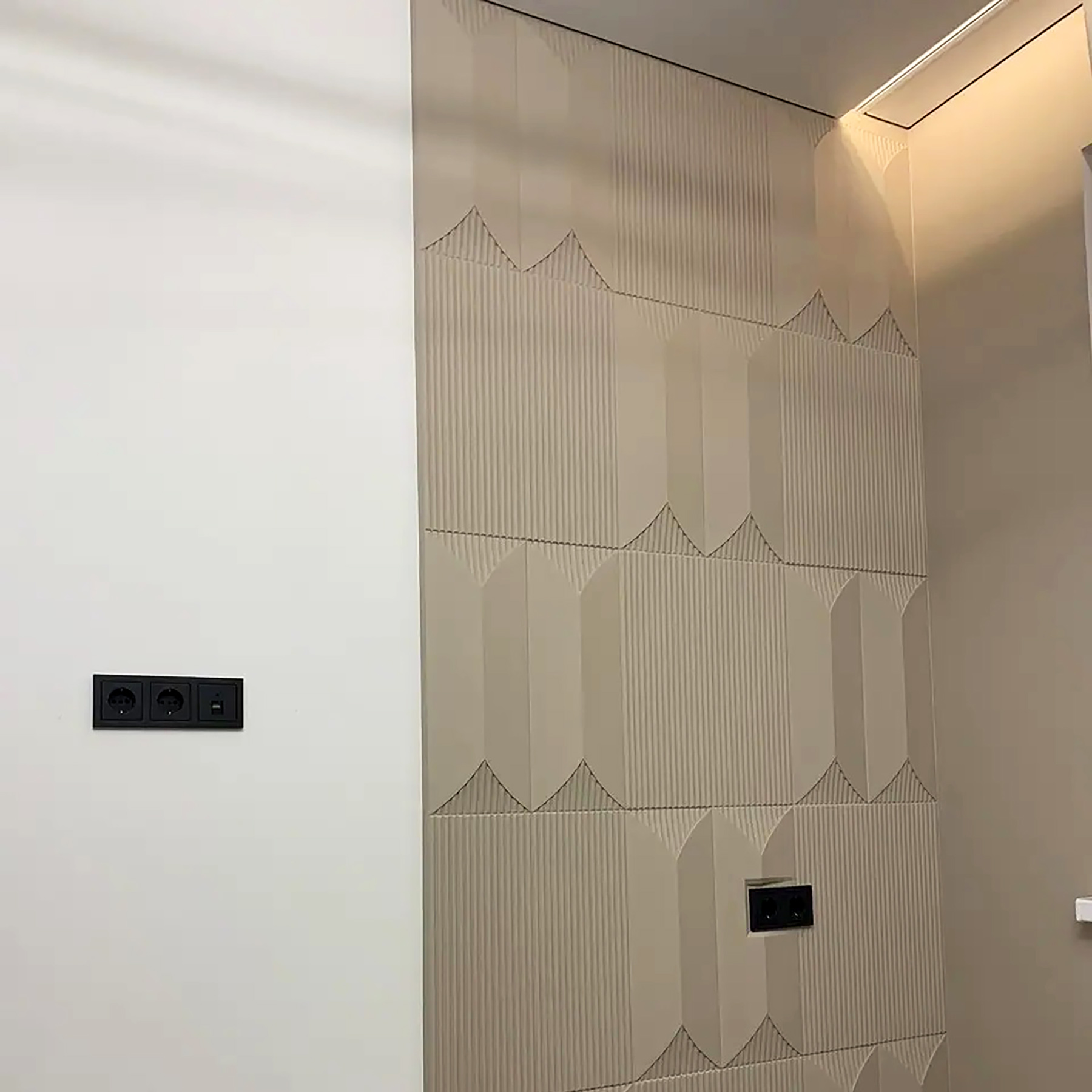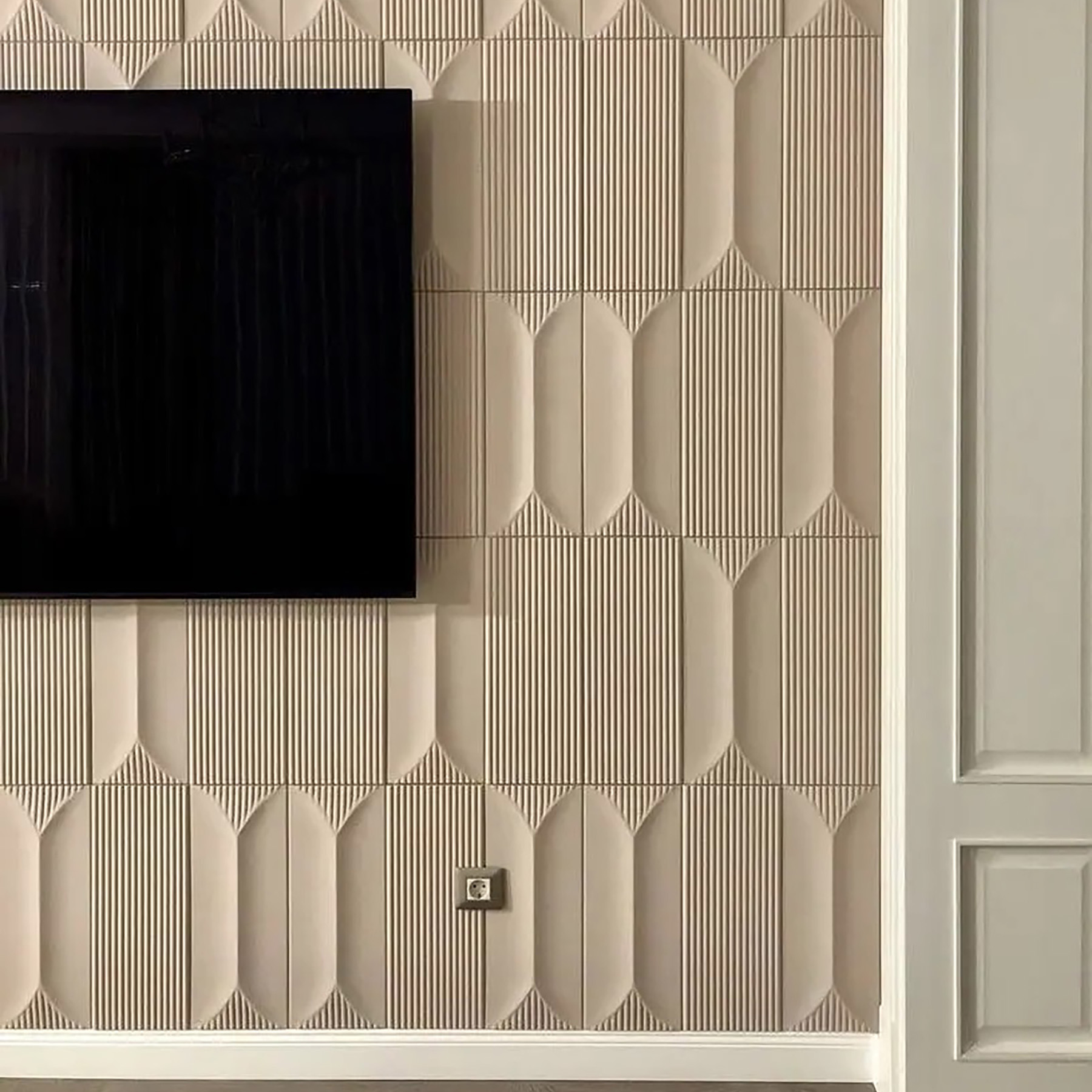 Набір панелей складається з лінійного та гладкого елементів. Застосовуються різноманітні варіанти кладки для створення індивідуального оздоблення стін. Можливі різні комбінації гіпсового декору. Плавний малюнок гіпсових виробів надаватиме водночас строгого та ненавязливого вигляду в кімнаті.