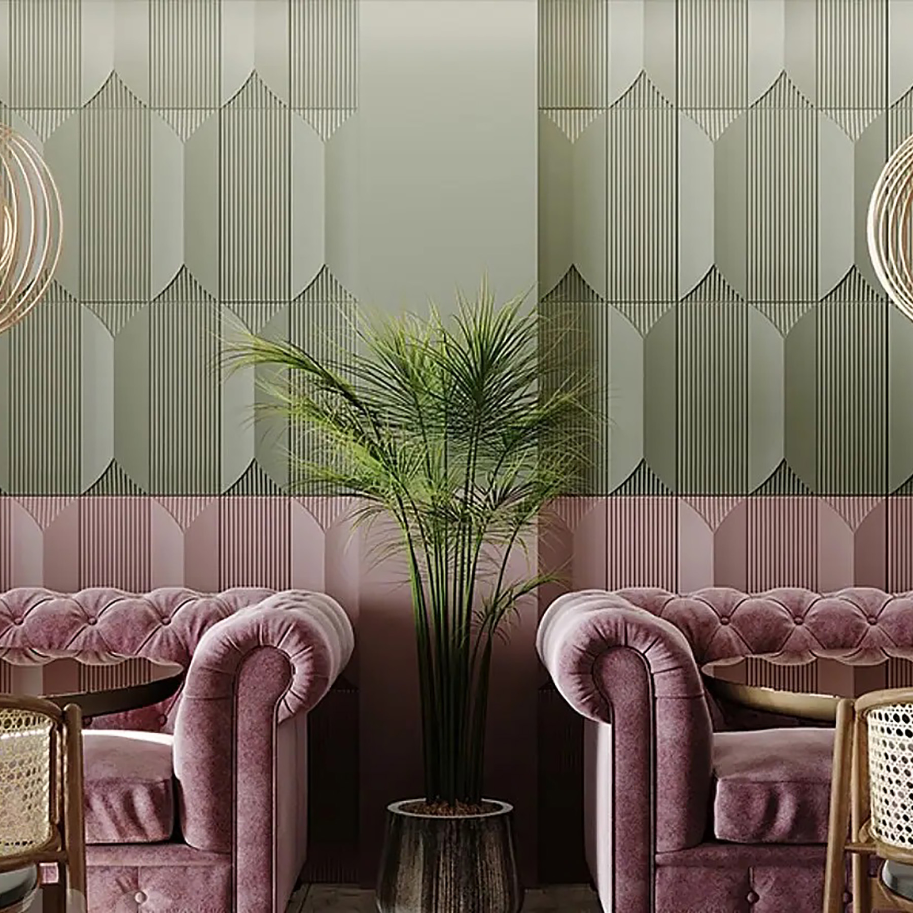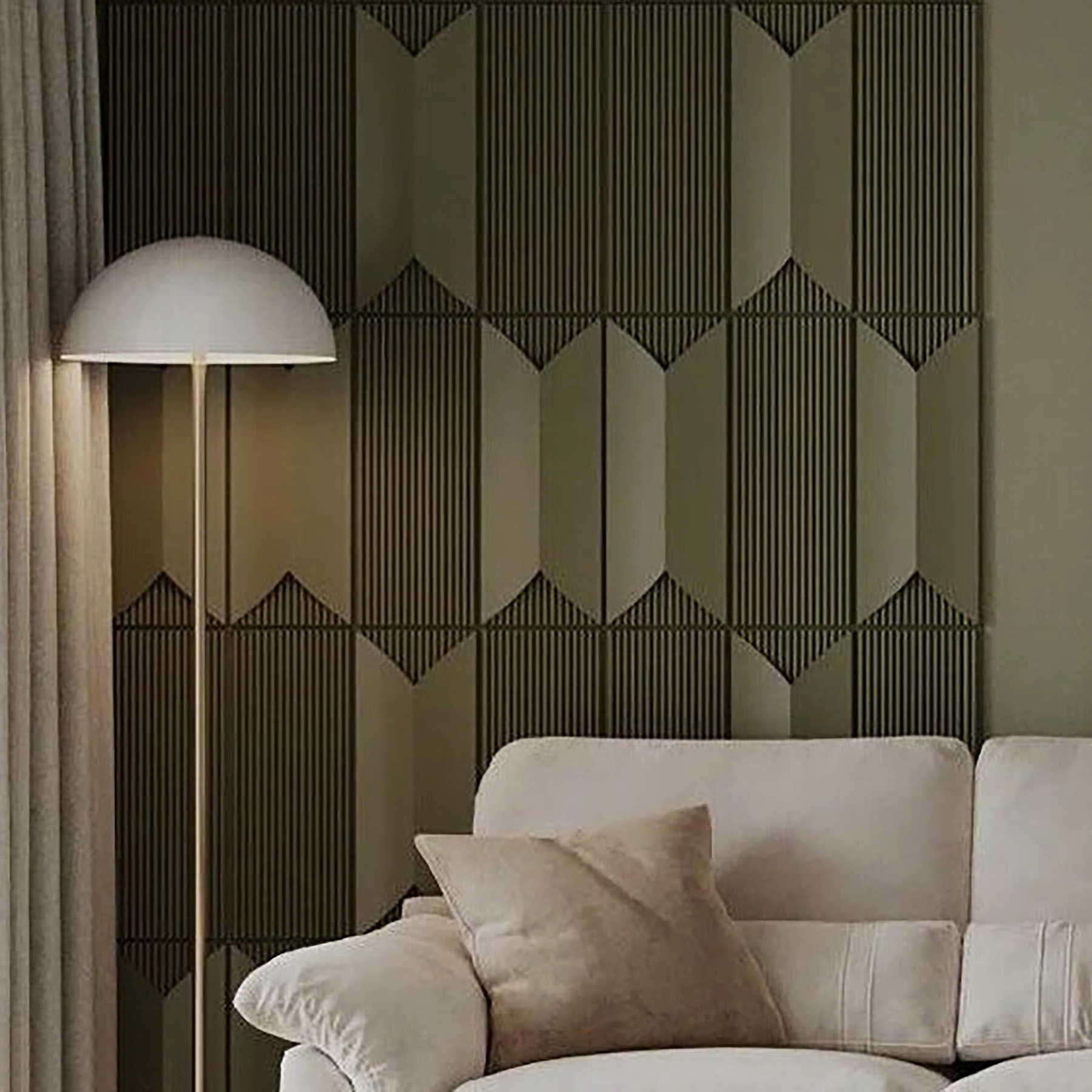 Плавні заокруглені грані та вертикальні смуги відтворюють характерне сецесійний стиль оздоблення стін кінця 19 початку 20 сторіччя. Елегантне чергування форм наповнює приміщення вишуканим аристократичним настроєм. У спальній кімнаті панелі "Менель" пофарбовані в пастельних тонах створять напрочуд затишну атмосферу.