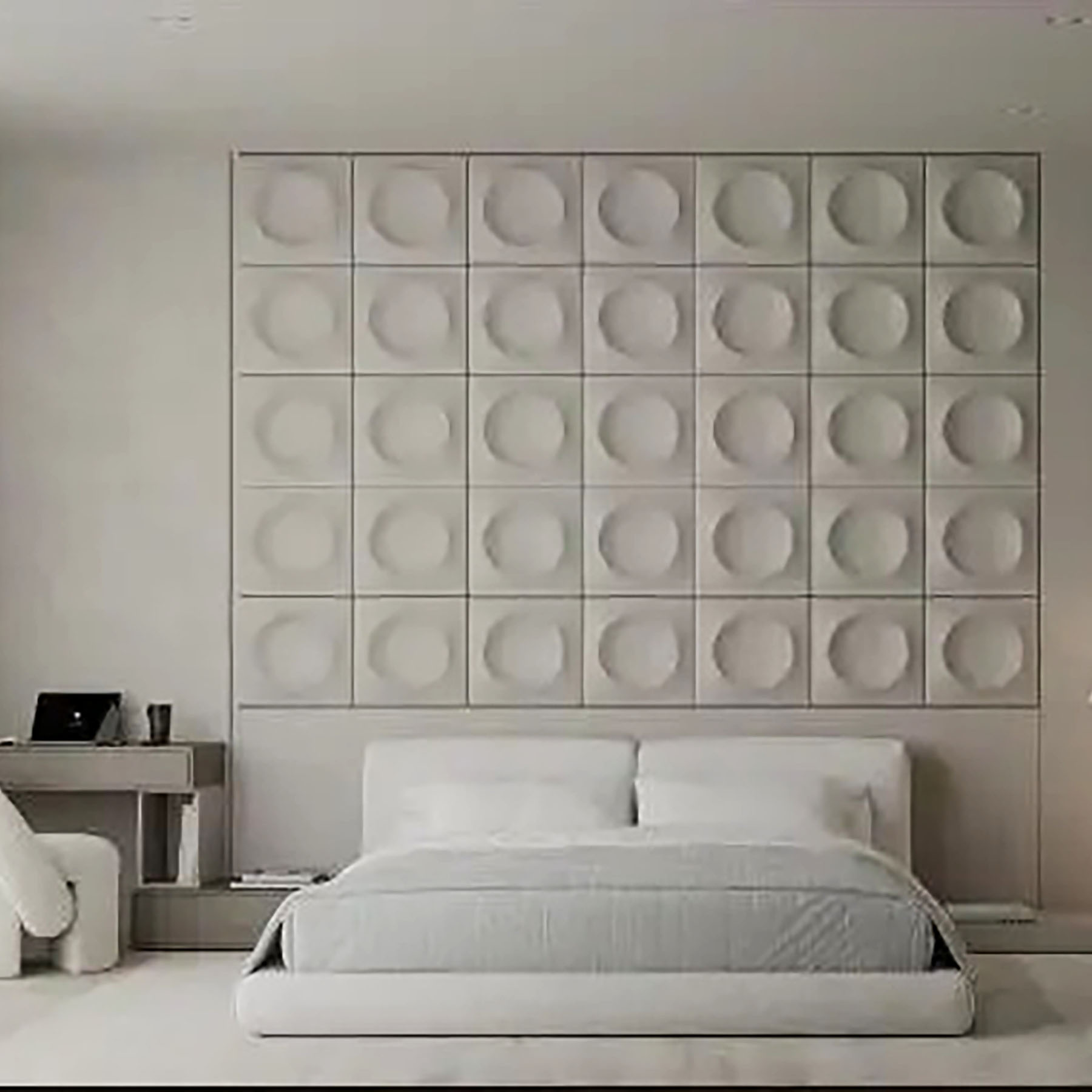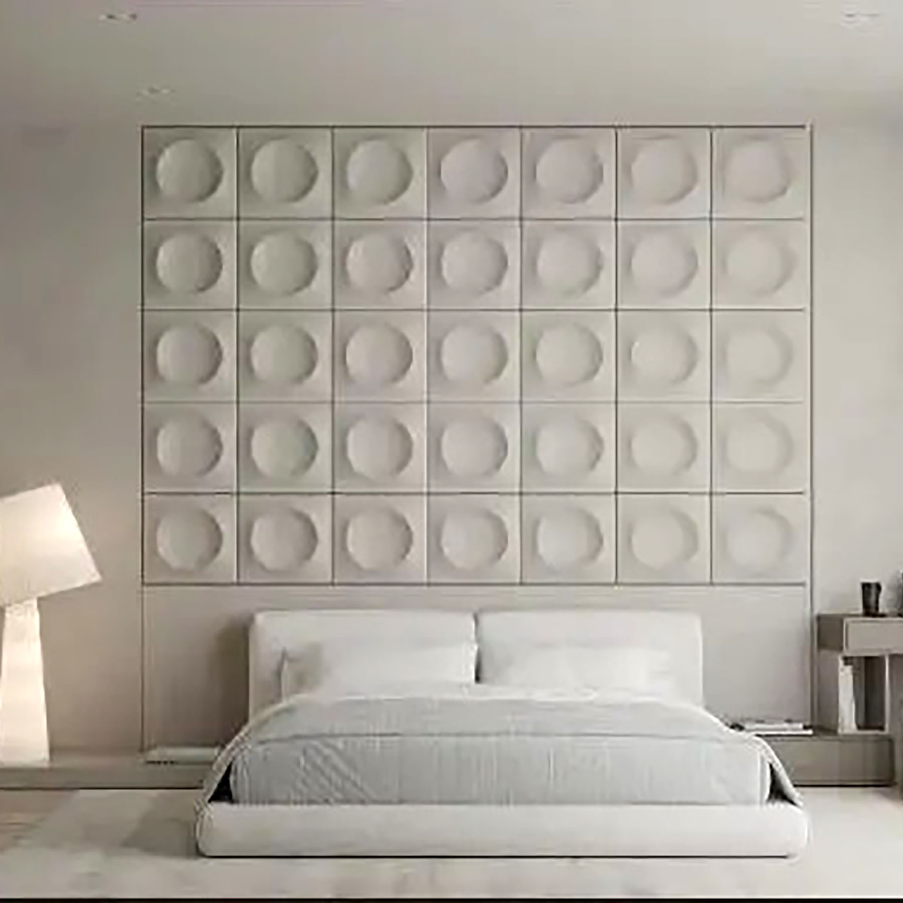 Декоративні гіпсові 3D-панелі "Сфера" оригінальний спосіб оздоблення стін в житлових та комерційних приміщень. Дизайн панелей у вигляді квадратних елементів зі сферичним заглибленням утворю стильне панно на стінах сучасному інтер’єрі. Округлі випукле заглиблення кожної панелі додає об’єму та просторовості. Компактні розміри гіпсових виробів дозволить без витрат облицювати стіни у квартирі, приватному будинку чи офісі.