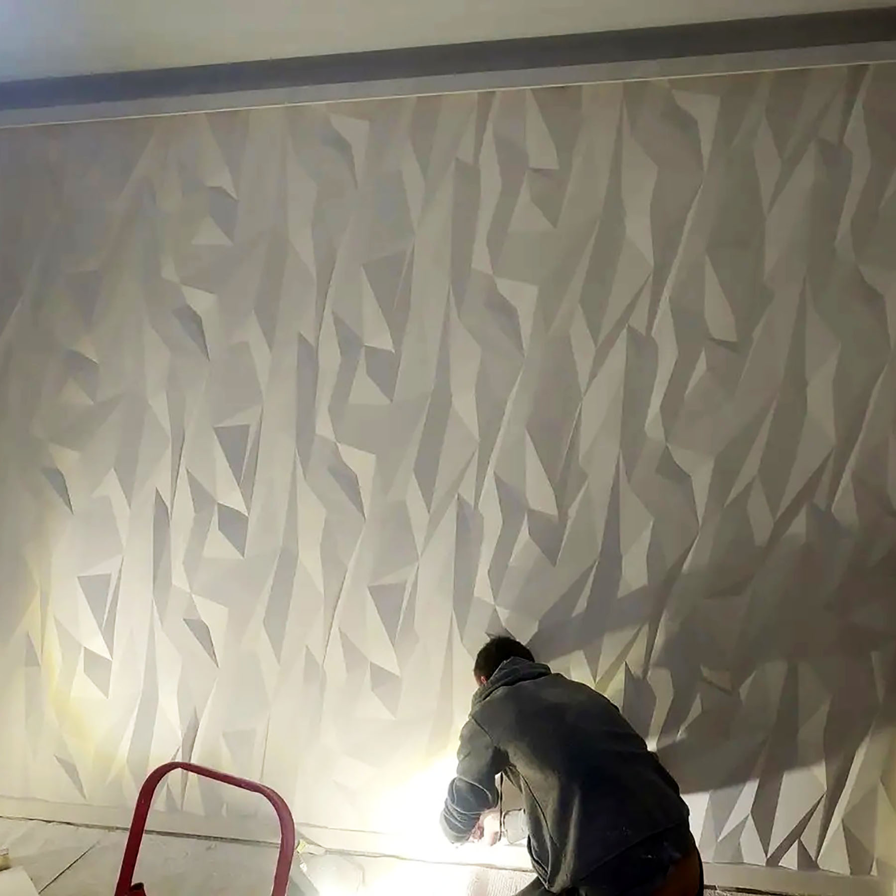 Модель "Stealth" своїми формами та дизайном асоціюється з літаком невидимкою. Найбільш доцільне використання гіпсових панелей у квартирах в стилях Мінімалізм, Хайтек. Техно. Стелс у вигляді чітких граней дуже ефектно виглядає у приймальнях фірм, рецепціях готелів, у клубах, тематичних кафе та ресторанів. 3д панелі фарбуються у необхідний колір інтер'єрними фарбами на водяній основі. "Стелс" у світлих тонах сприймається відносно спокійним фоном на стіні.