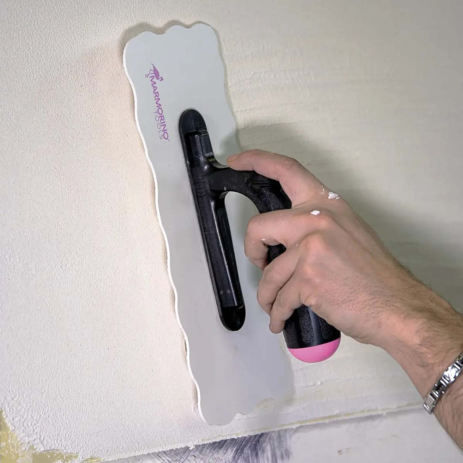 Кельма-гладилка ефективно застосовується для нанесення та розгладжування фактурних та тонкоплівкових декоративних штукатурок. Ергономічний інструмент італійського бренду Marmorino Tools суперлегкий і зручний, що забезпечує комфортність в роботі, знижує втому в процесі нанесення декоративного покриття.