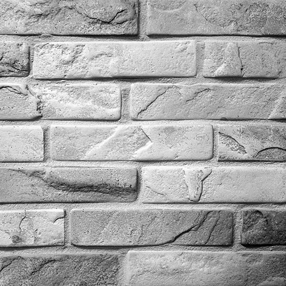 Виражений рельєф неповторні різновиди окремих плиток складаються в оригінальну кам’янисту композицію на стіні. Сіре тонування поверхні підкреслює вигляд кам’яної кладки. Цегла під камінь ефектно виглядає в сучасному інтер’єрі. Сірі неоднорідні відтінки цегли підкреслюють об’ємність. Використовується для внутрішнього оздоблення стін, та камінів. Імітація сірого каменю як найкраще підходить для оздоблення приміщень різного типу в сірих тонах.