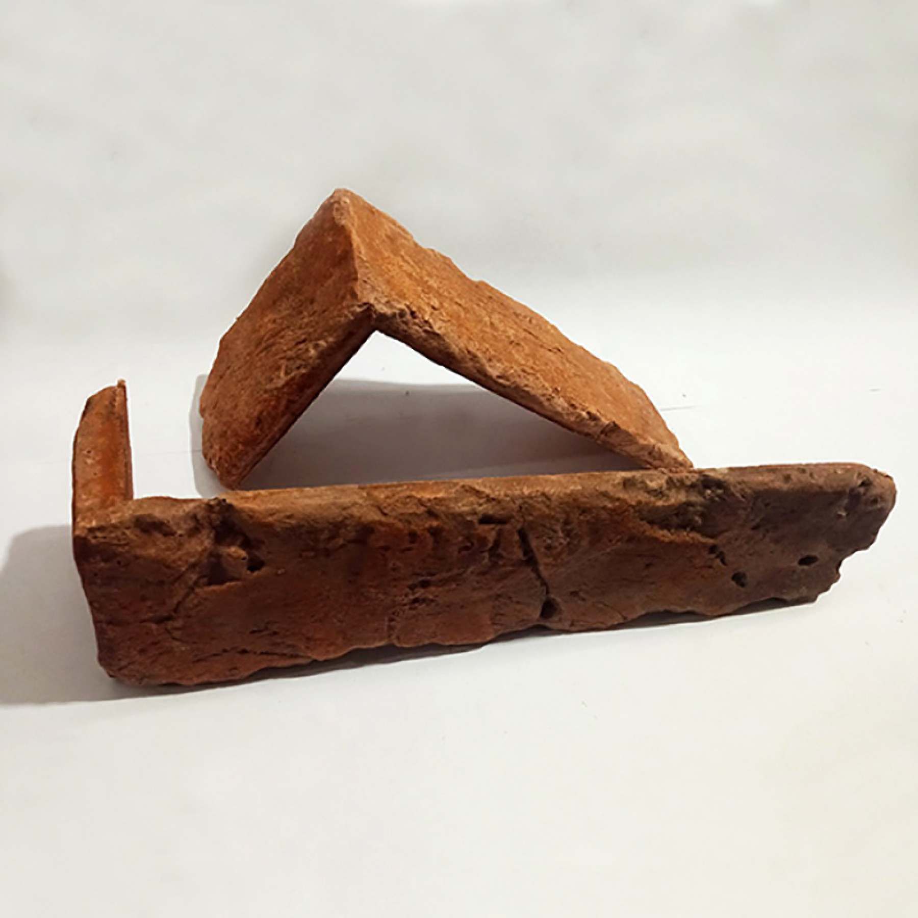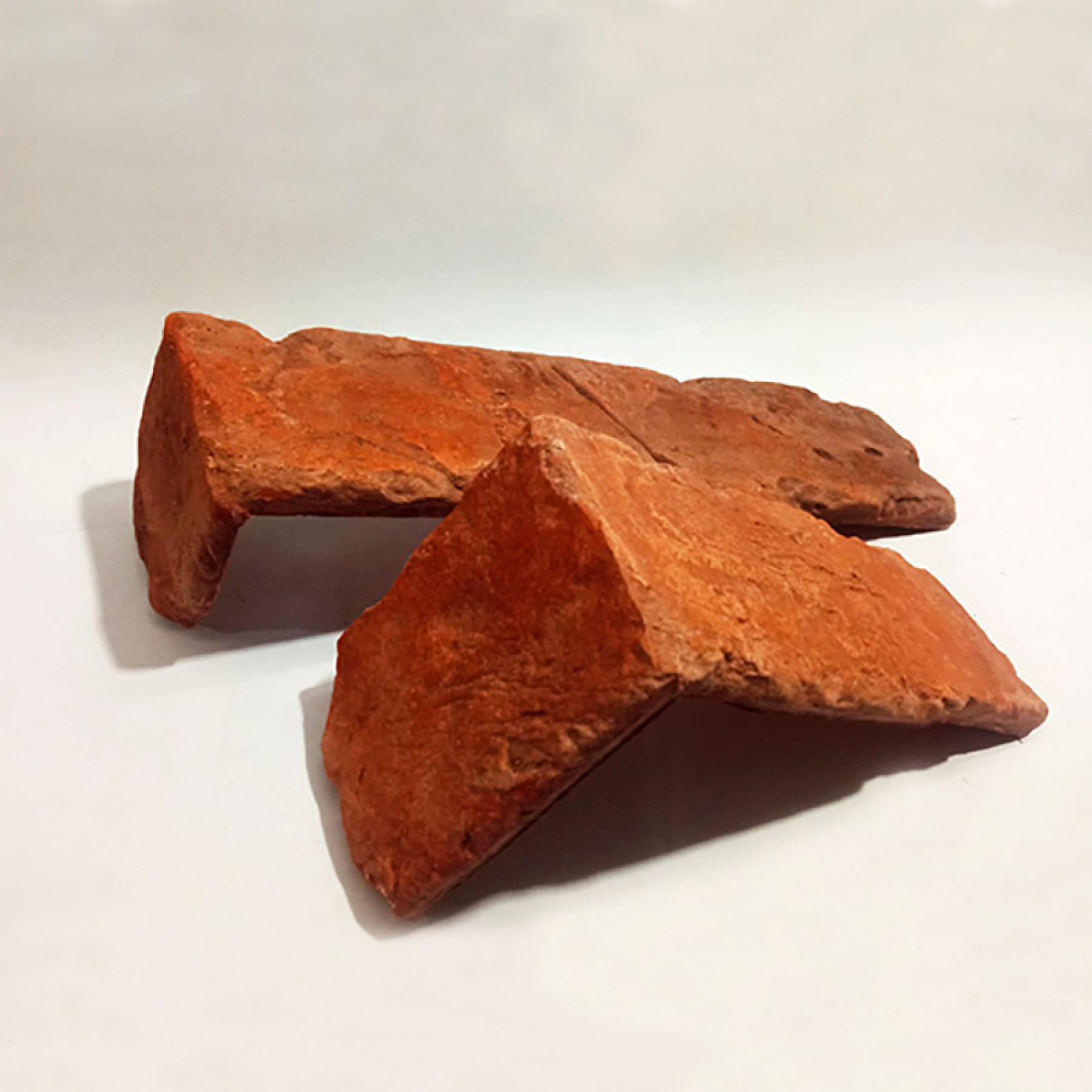 Кутові елементи двох типів виготовляються з гіпсу та наповнюється екологічним залізо оксидним барвником в базовому замісі. Після висихання проходить декілька стадій тонування. Додатково створюється ефект перепаленої цегли.