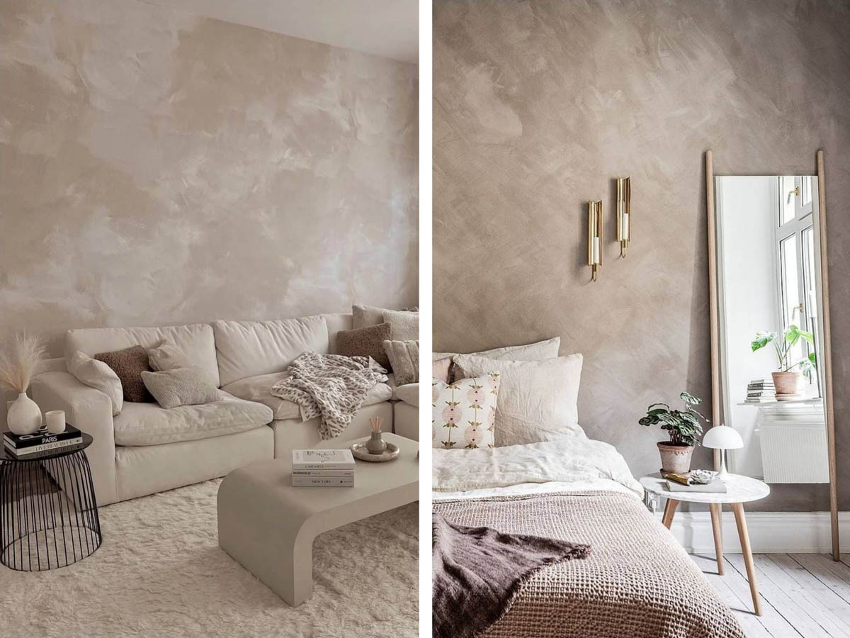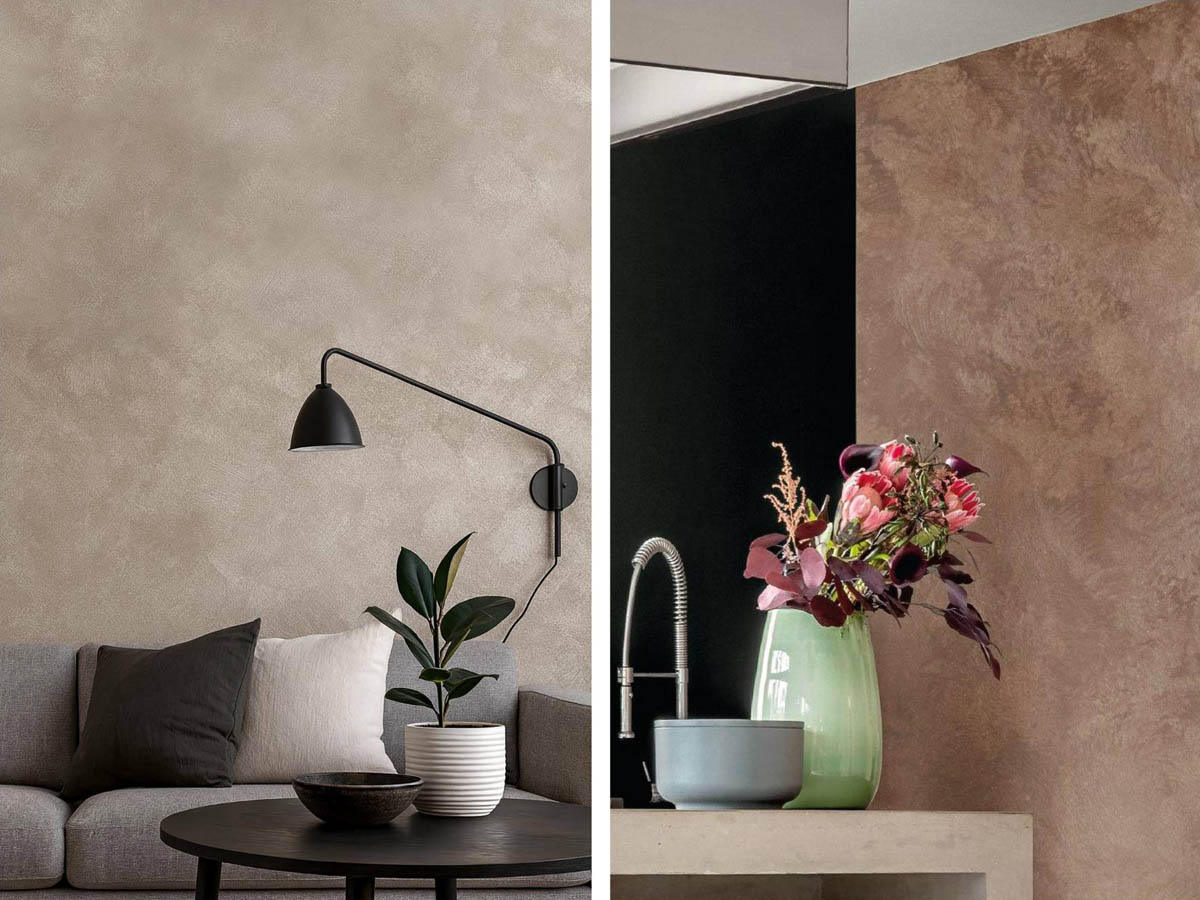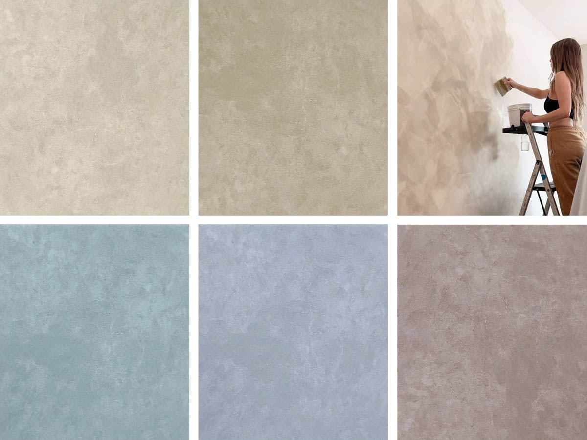Колірна гама — від теплих бежевих, теракотових до холодних сірих та піщаних відтінків. Наносити легко навіть самостійно: матеріали "пробачають" дрібні недоліки та створюють унікальний малюнок при кожному русі руки.