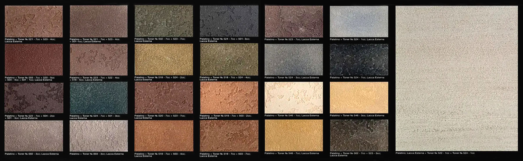 Декоративне покриття з ефектом Травертину окрім фасадного призначення надзвичайно популярне в оздобленні приміщень. Неймовірна пластичність продукції дозволяє створювати різноманітні ефекти за допомогою спеціальних технік нанесення. "Палатіно" виконується різними техніками: «ефект коралу», «під цеглу», «естамп», травертин, «кам’яне дерево», «екстрим», в стилі лофт, тигровий камінь, дикі валуни тощо. Надзвичайно пластичний матеріал дозволить створити найрізноманітніші фактури які співзвучні вашому дизайну інтер’єру та екстер’єру.