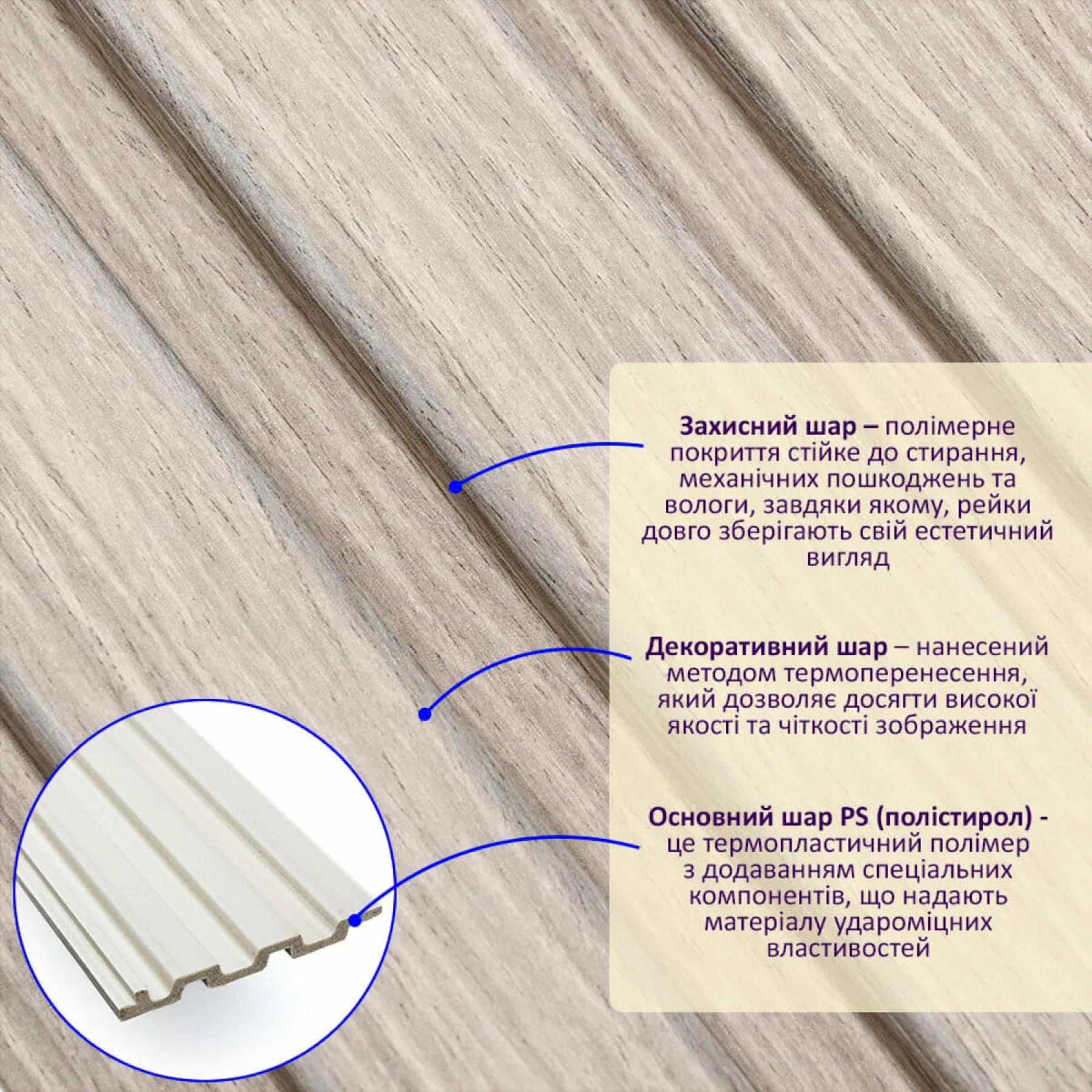 Рейка декоративна Світлий дуб стильний та витривалий матеріал для стін інтер’єру за вигідною ціною.