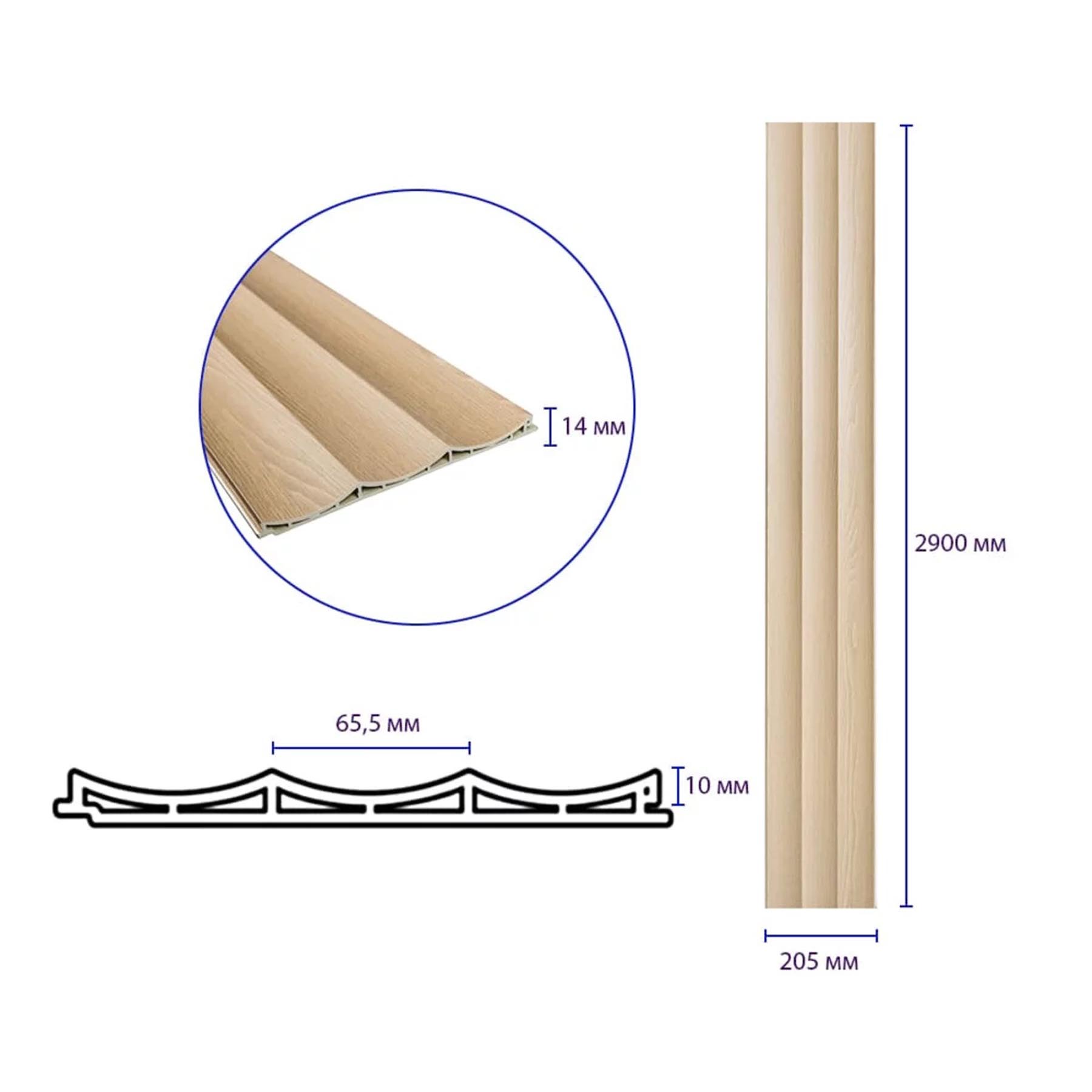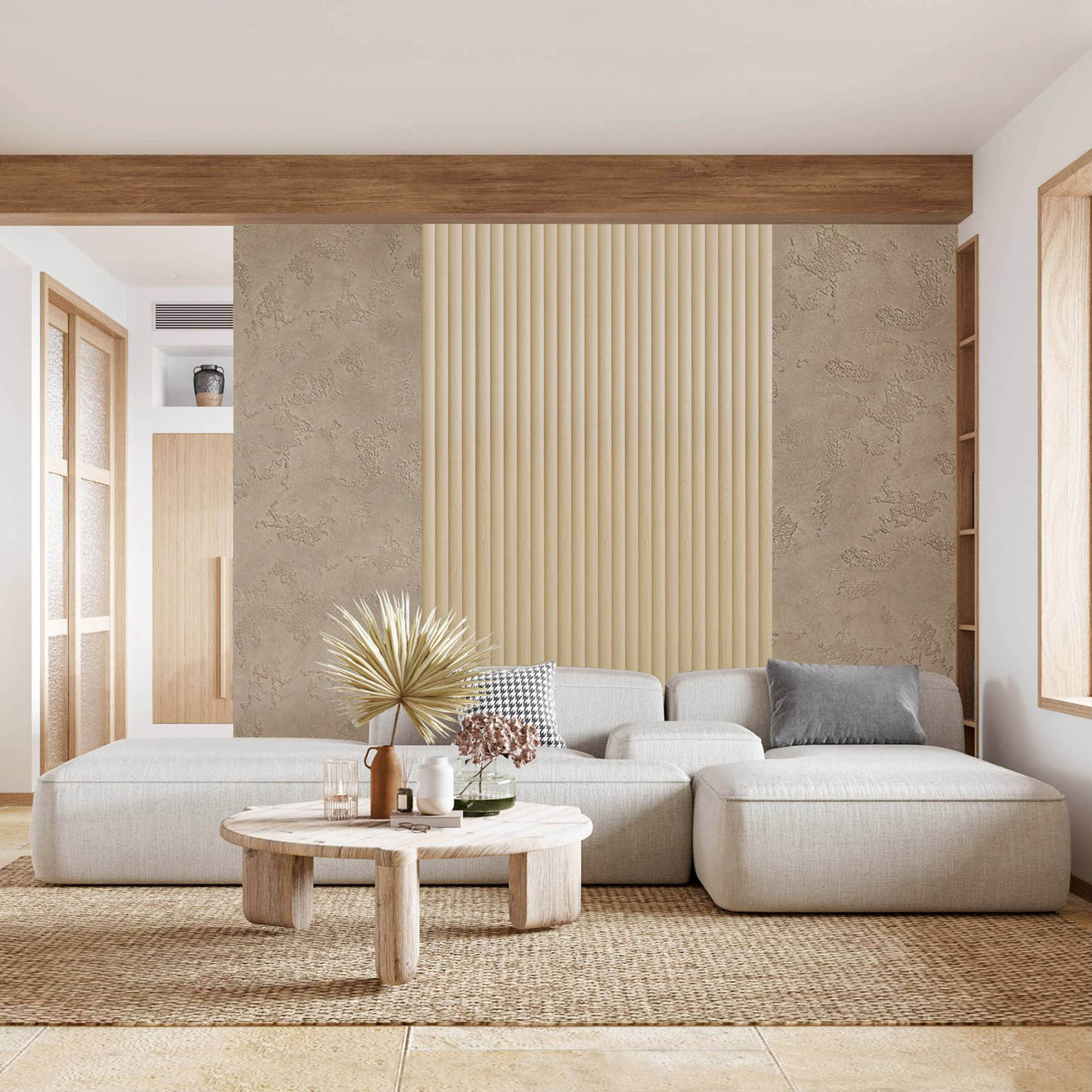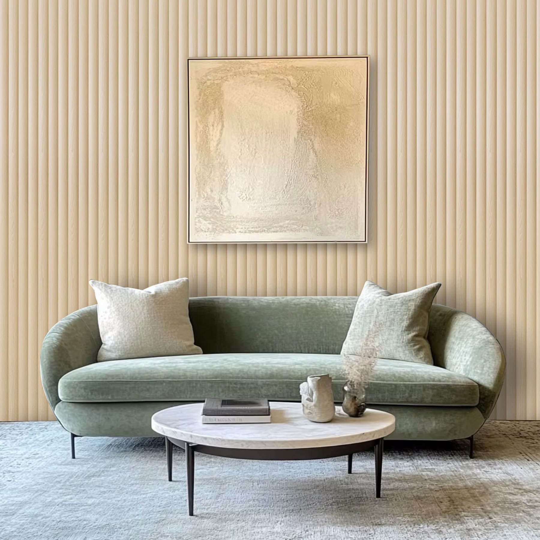 "Ванільний Клен" – ніжний кремово-бежевий відтінок з м'якими світлими переходами, нагадує натуральний клен з легким ванільним підтоном. Делікатні пастельні тони створюють відчуття простору, світла та повітряності. Елегантні рейки підходить для скандинавських, мінімалістичних та сучасних інтер'єрів у світлих тонах. Рейковий рельєф візуально розширює приміщення.