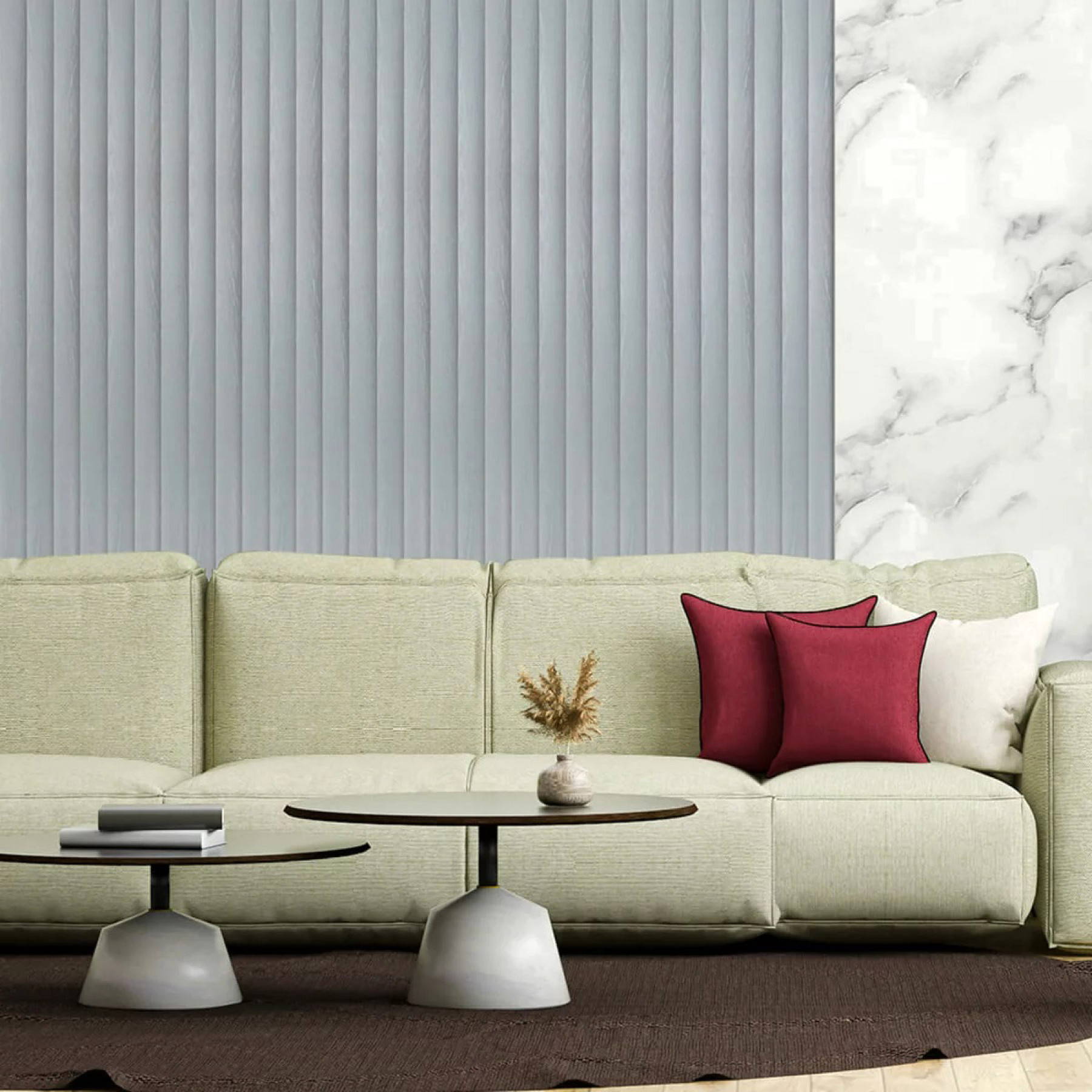 Рейки виготовлені зі суміші деревних волокон та полімерів. Вони зберігають візуальну теплоту дерева, стійкі до розтріскування, викривлення та вологи. Служать роками без складного догляду.