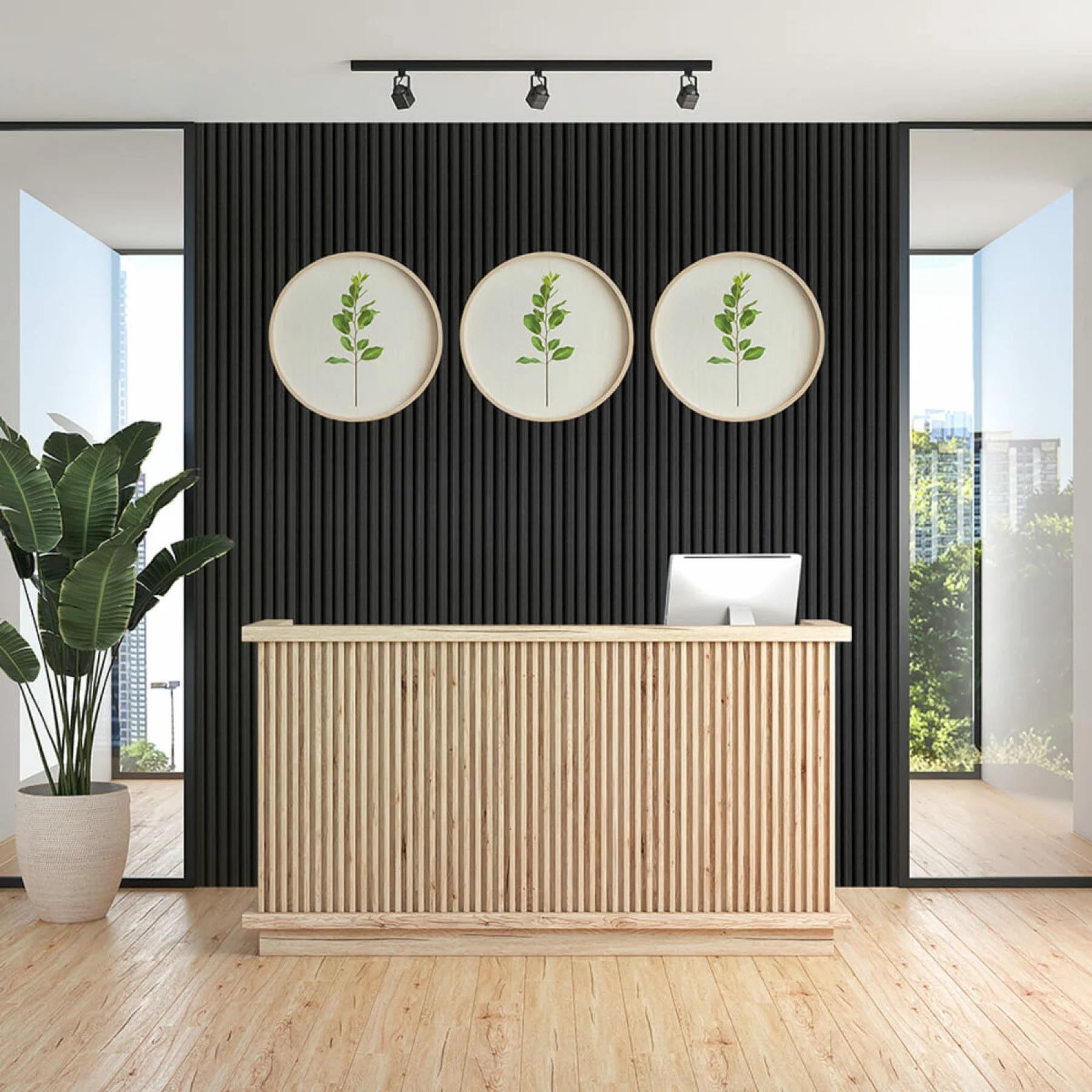 - Стильний 3D-ефект. Завдяки об’ємній формі рейок стіна додає просторовості та фактури. Це сучасна альтернатива дорогому оздобленню деревом, яка при цьому допомагає зберігати природні ліси.