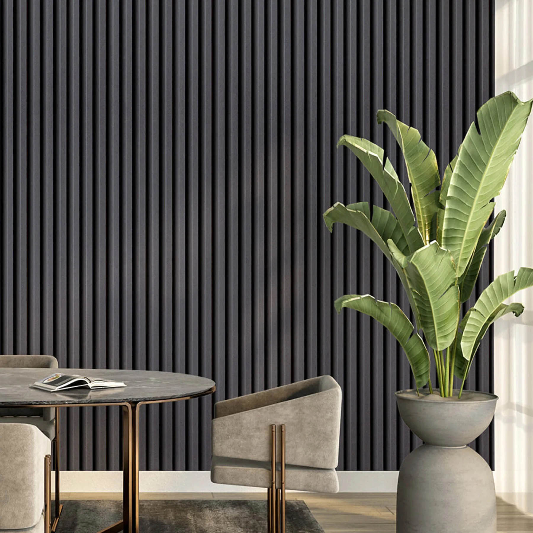 Чорна рейка WPC — це справжній «вау-ефект» для вашого інтер’єру, що миттєво додає простору глибини та преміального лоску. Рейковий декор створює стильний 3D-рельєф та широко використовується для внутрішнього оздоблення житлових та комерційних приміщень. Стінові рейки стійкі до вологи та подряпин, а насичений колір і чітка форма залишаться бездоганними на довгі роки.