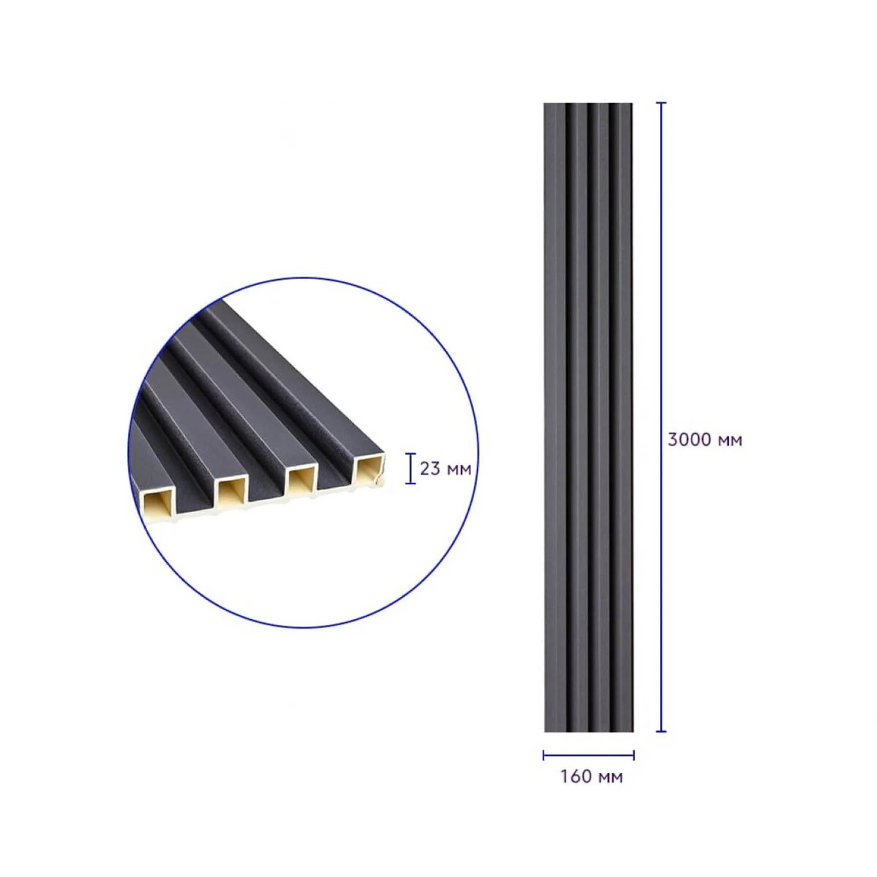 - Розміри: 3000x160x23 мм