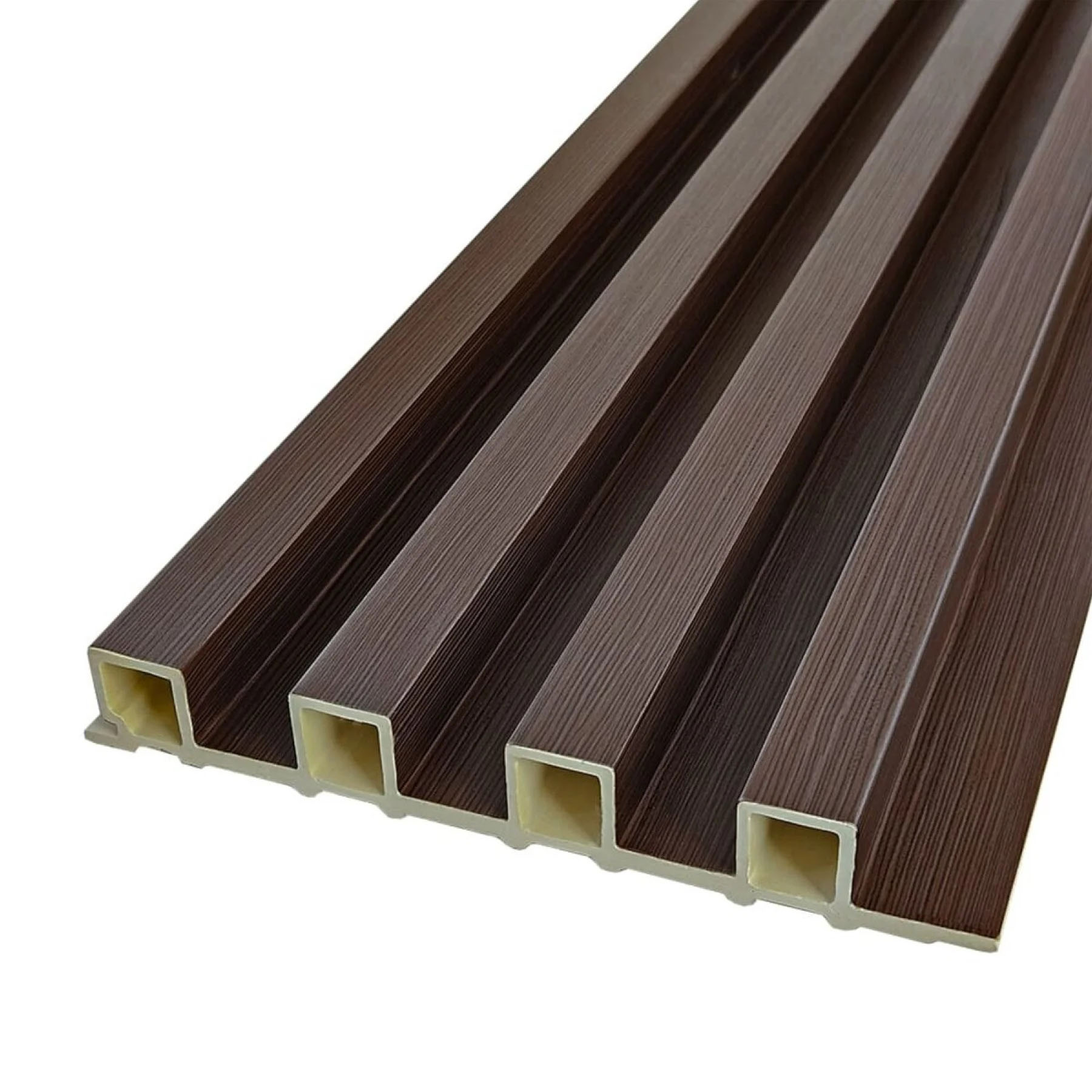 - Надміцна основа ДПК: Ядро із суміші деревної муки та полімерів WPC гарантує повну вологостійкість: рейка не деформується, не розсихається і зберігає ідеальну форму за будь-яких умов