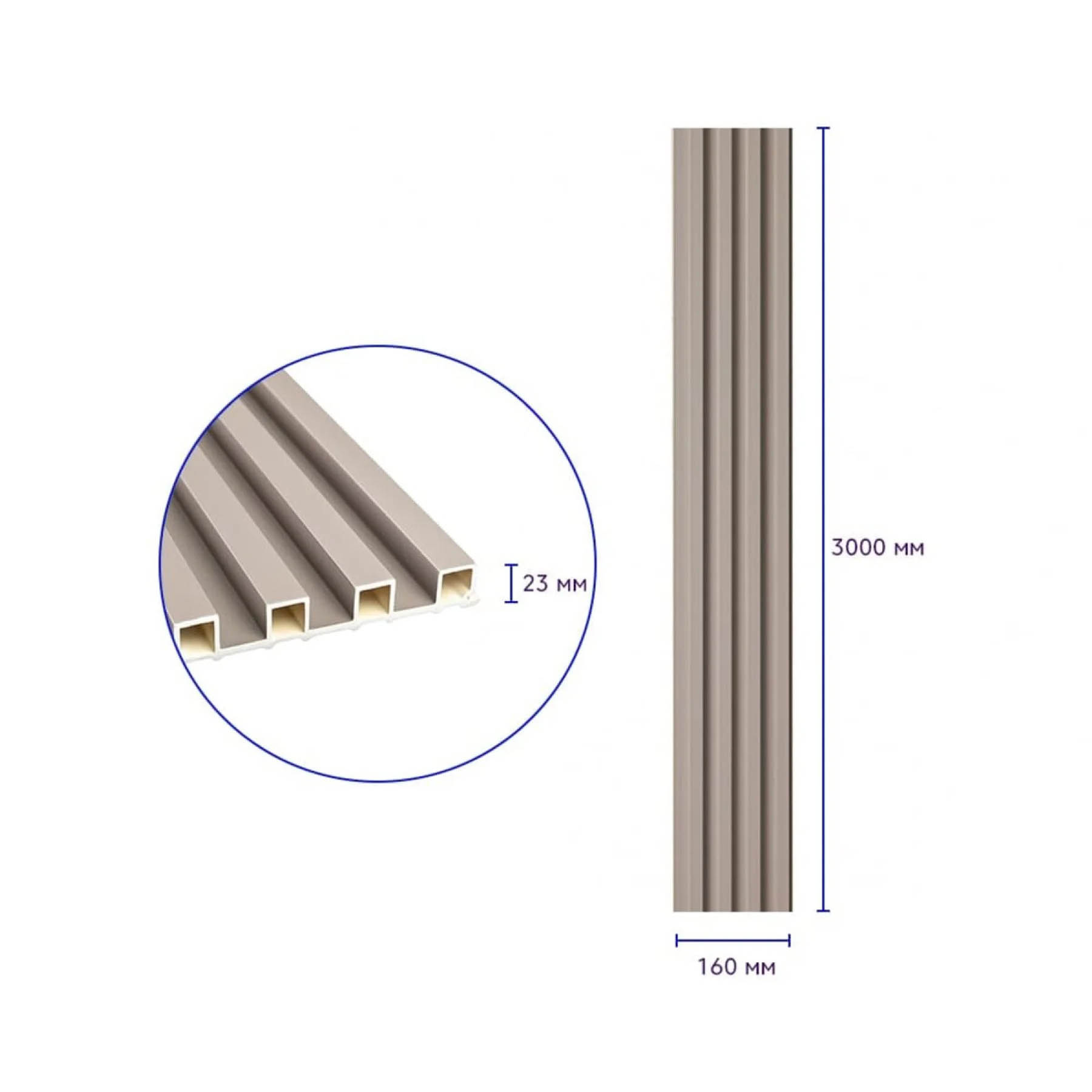 - Розміри: 3000x160x23 мм