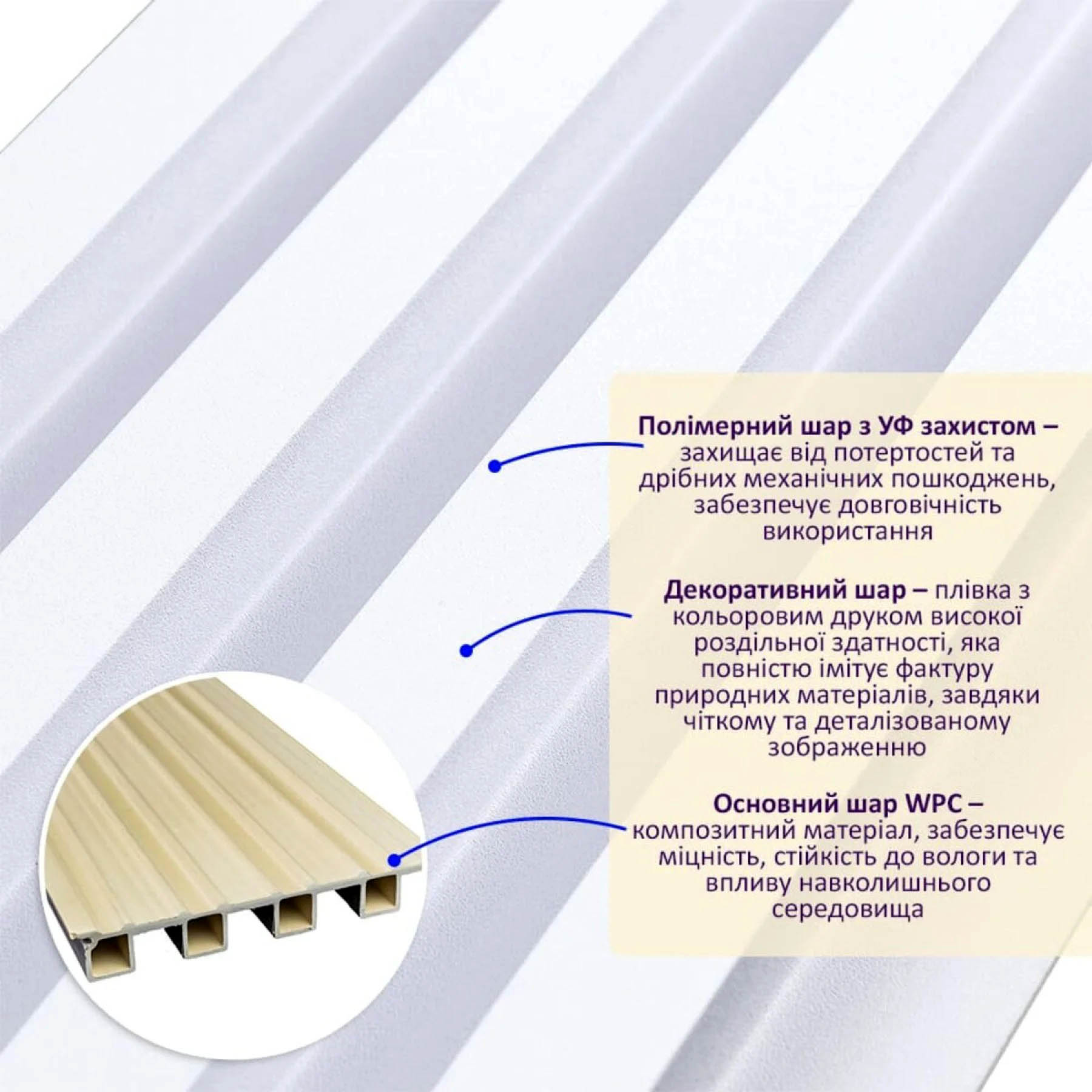 Стінова рейка WPC у вишуканому кольорі «Перламутр» - будівельний матеріал для внутрішнього оздоблення житлових та комерційних інтер'єрів. Завдяки триметровій довжині рейковий декор дозволяє створювати ідеально рівні вертикальні 3D лінії без зайвих з’єднань. Композитний матеріал надзвичайно практичний: стійкий до вологи, не вигорає на сонці та легко очищується від забруднень. Монтаж виконується швидко за допомогою клею, що робить оновлення стін у вітальні чи спальні максимально простим процесом.